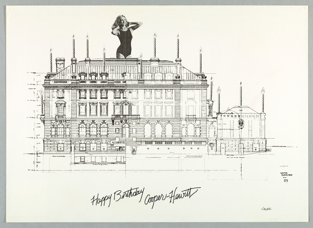 This is a embellishment. It was created by Scott Wallace and made for Cooper Hewitt, Smithsonian Design Museum. It is dated ca. 1977 and we acquired it in 1978. Its medium is cut paper and ink. It is a part of the Drawings, Prints, and Graphic Design department.