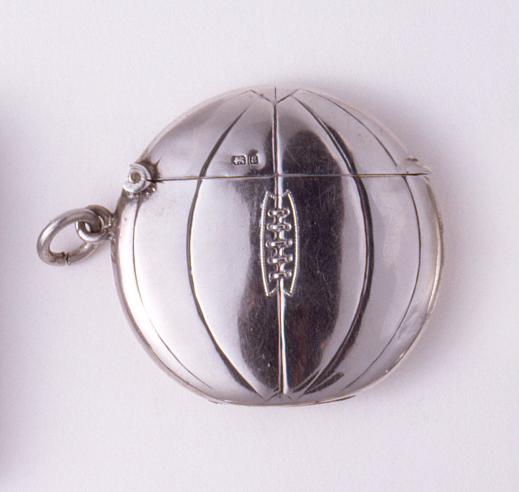 British Football Matchsafe; Manufactured by Sampson Mordan & Company; England; silver; 4.4 x 5.7 x .6 cm (1 3/4 x 2 1/4 x 1/4 in. ); Gift of Stephen W. Brener and Carol B. Brener; 1978-146-157