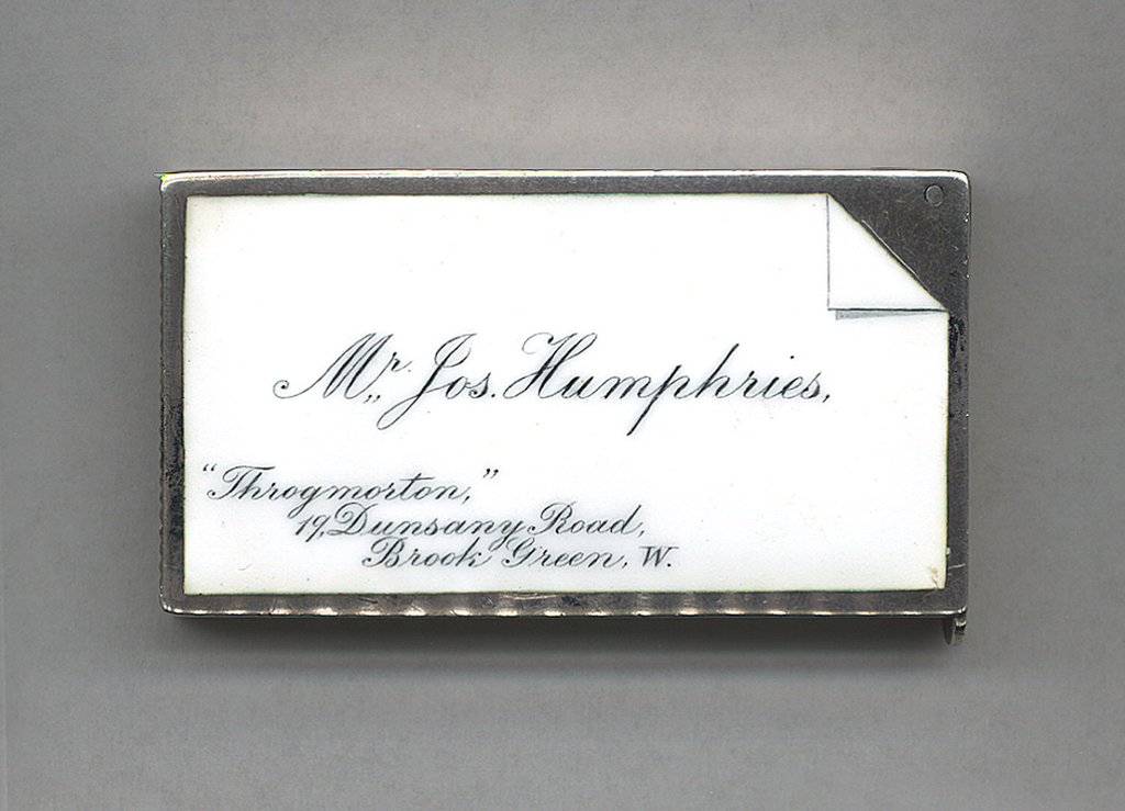 <ref name=CH>{{cite web |url=https://www-4.collection.cooperhewitt.org/objects/18494745/ |title=Calling Card Matchsafe |author=Cooper Hewitt, Smithsonian Design Museum |accessdate=19 December 2025 |publisher=Smithsonian Institution}}</ref>