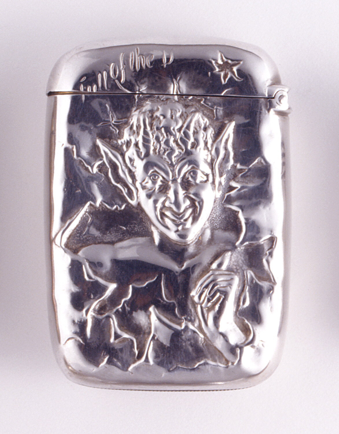 "Full of the D" Matchsafe; Manufactured by Gorham Manufacturing Company (United States); USA; silver; 6.1 x 4.2 x 1.3 cm (2 3/8 x 1 5/8 x 1/2 in. ); Gift of Stephen W. Brener and Carol B. Brener; 1978-146-693