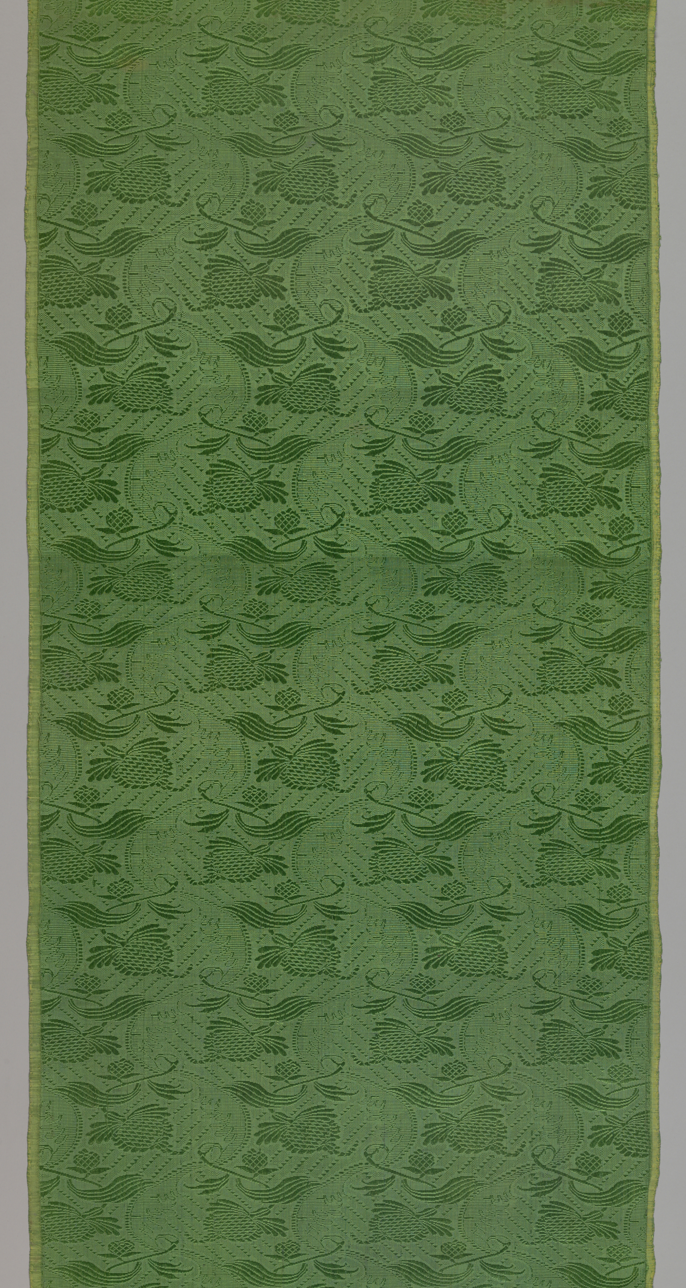 This is a Textile. It is dated 1700–1750 and we acquired it in 1978. Its medium is silk and its technique is plain weave patterned by floats of a set of supplementary warps. It is a part of the Textiles department.