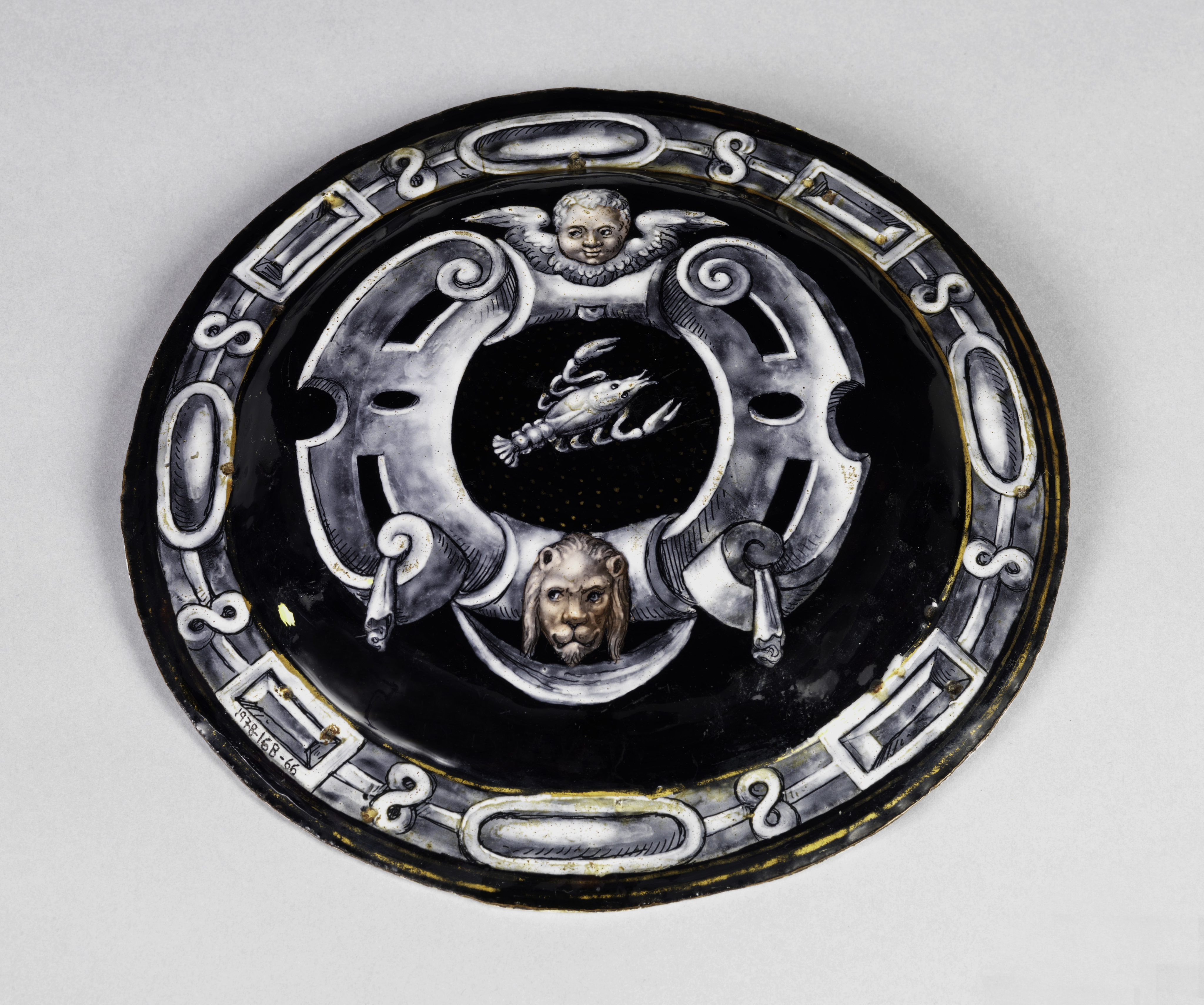 This is a plate. It is dated 16th century and we acquired it in 1978. Its medium is enameled copper. It is a part of the Product Design and Decorative Arts department.