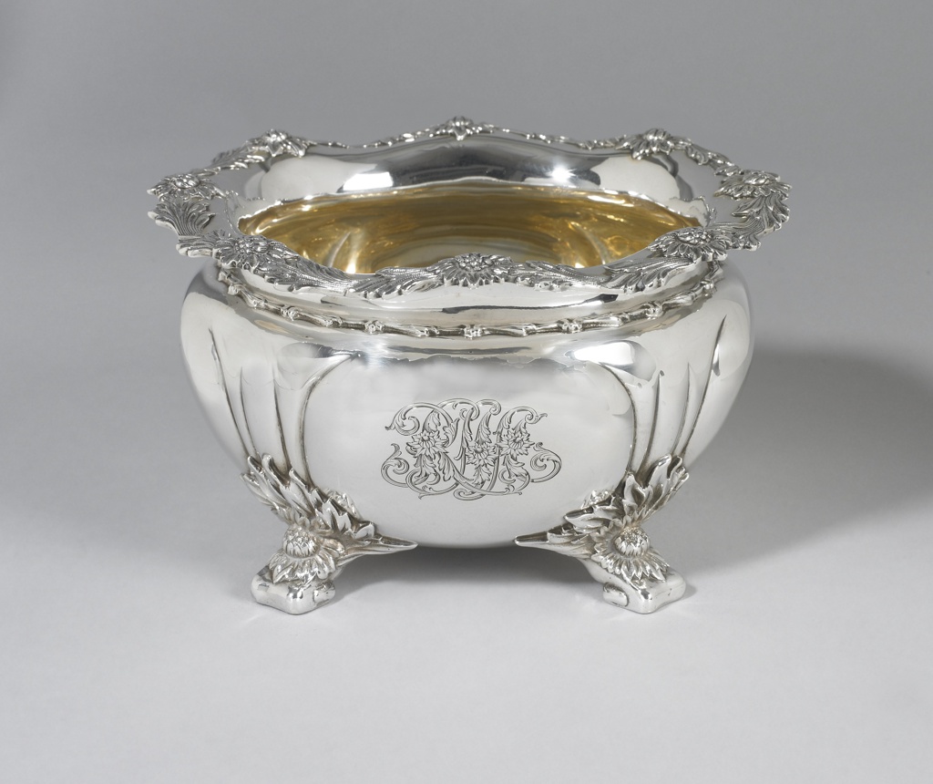 See more objects with the tag container, dining, decorative, silver, monogram, foliate, globular.