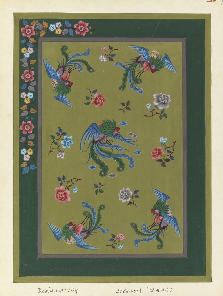 Inscribed in graphite, lower margin: Design #1309 Codewod "Zahoo".