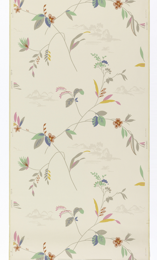 This is a Sidewall. It is dated 1935–45 and we acquired it in 1979. Its medium is machine-printed on paper. It is a part of the Wallcoverings department.