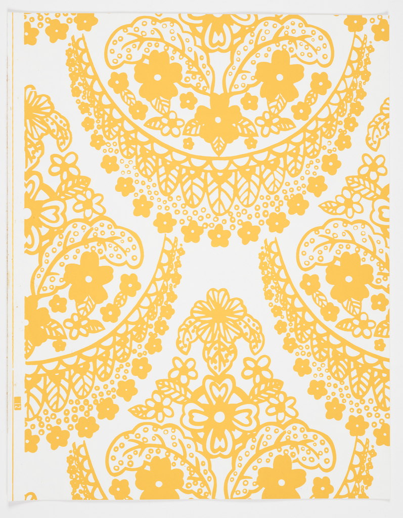 This is a Sample book. It was manufactured by F. Schumacher & Co.. It is dated 1978 and we acquired it in 1979. Its medium is screen printed on paper, cotton. It is a part of the Wallcoverings department.