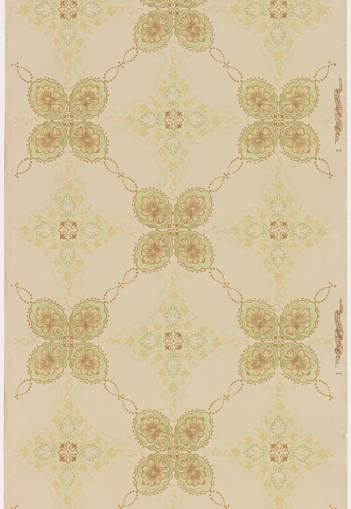 This is a Ceiling paper. It was manufactured by Standard Wall-Paper Company. It is dated 1905–1915 and we acquired it in 1979. Its medium is machine-printed paper. It is a part of the Wallcoverings department.