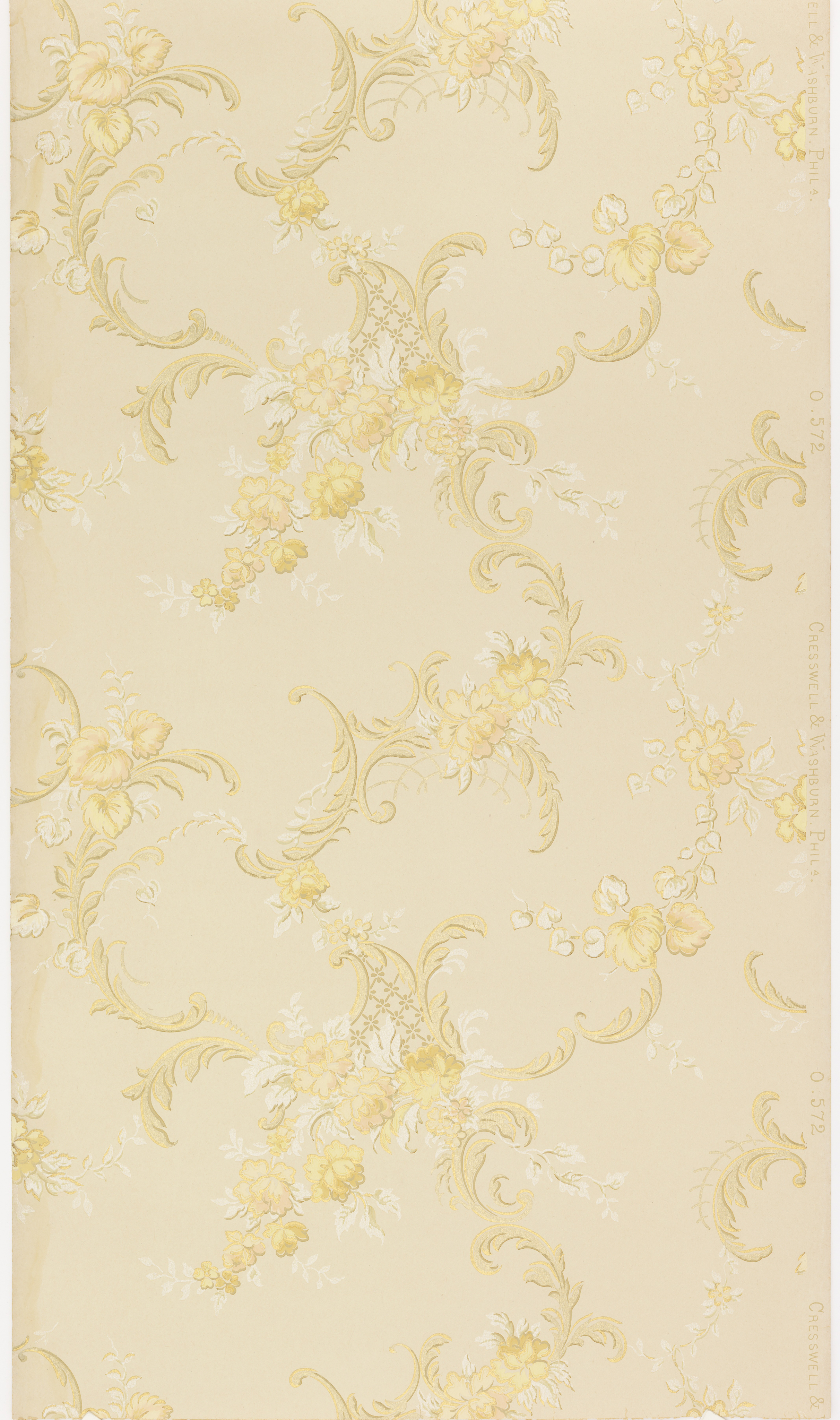 This is a Ceiling paper. It was manufactured by Cresswell & Washburn Ltd. It is dated 1905–1915 and we acquired it in 1979. Its medium is machine-printed paper, liquid mica. It is a part of the Wallcoverings department.
