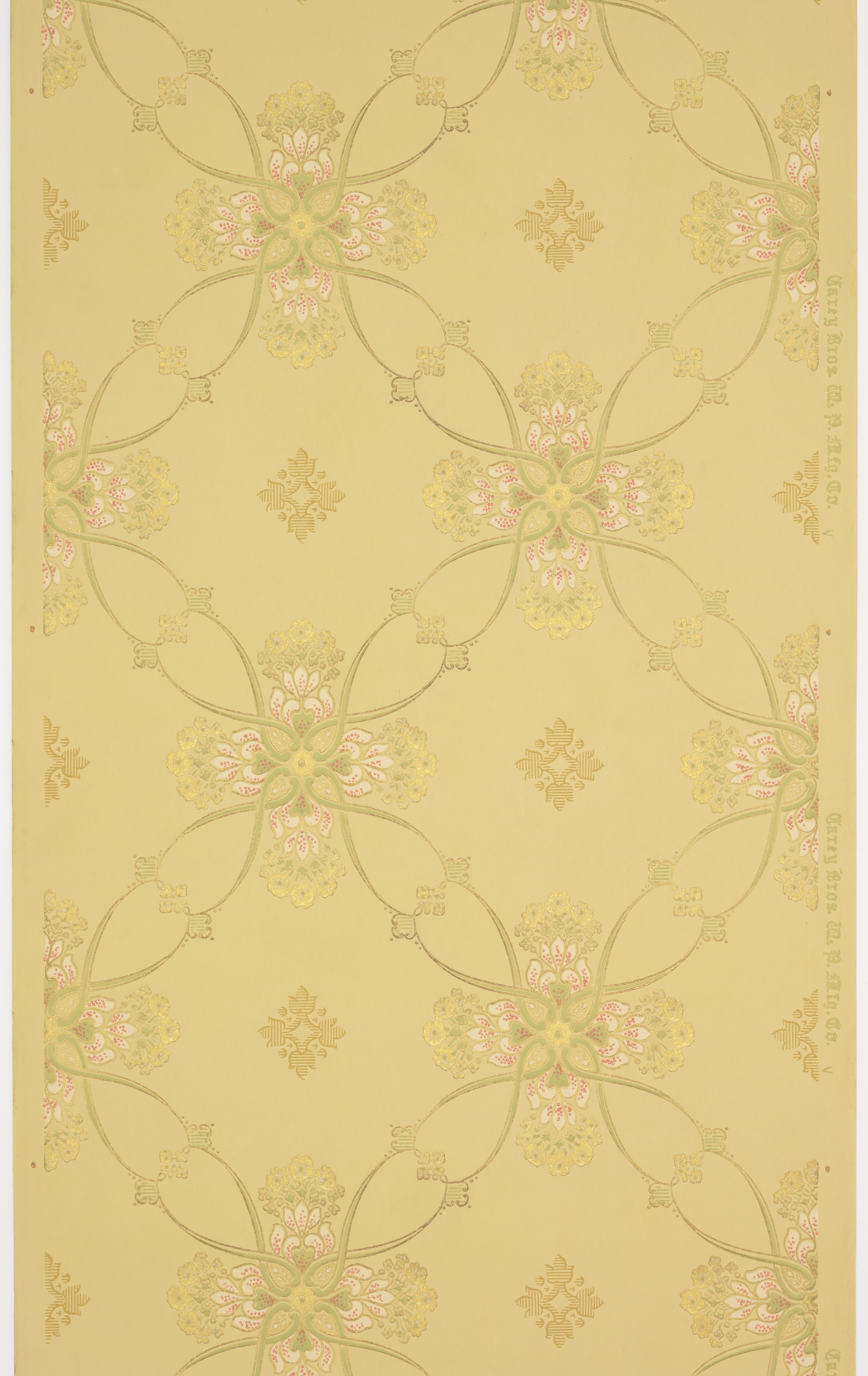 This is a Ceiling paper. It was manufactured by Carey Bros. W.P. Mfg. Co.. It is dated 1905–1915 and we acquired it in 1979. Its medium is machine-printed paper, liquid mica. It is a part of the Wallcoverings department.