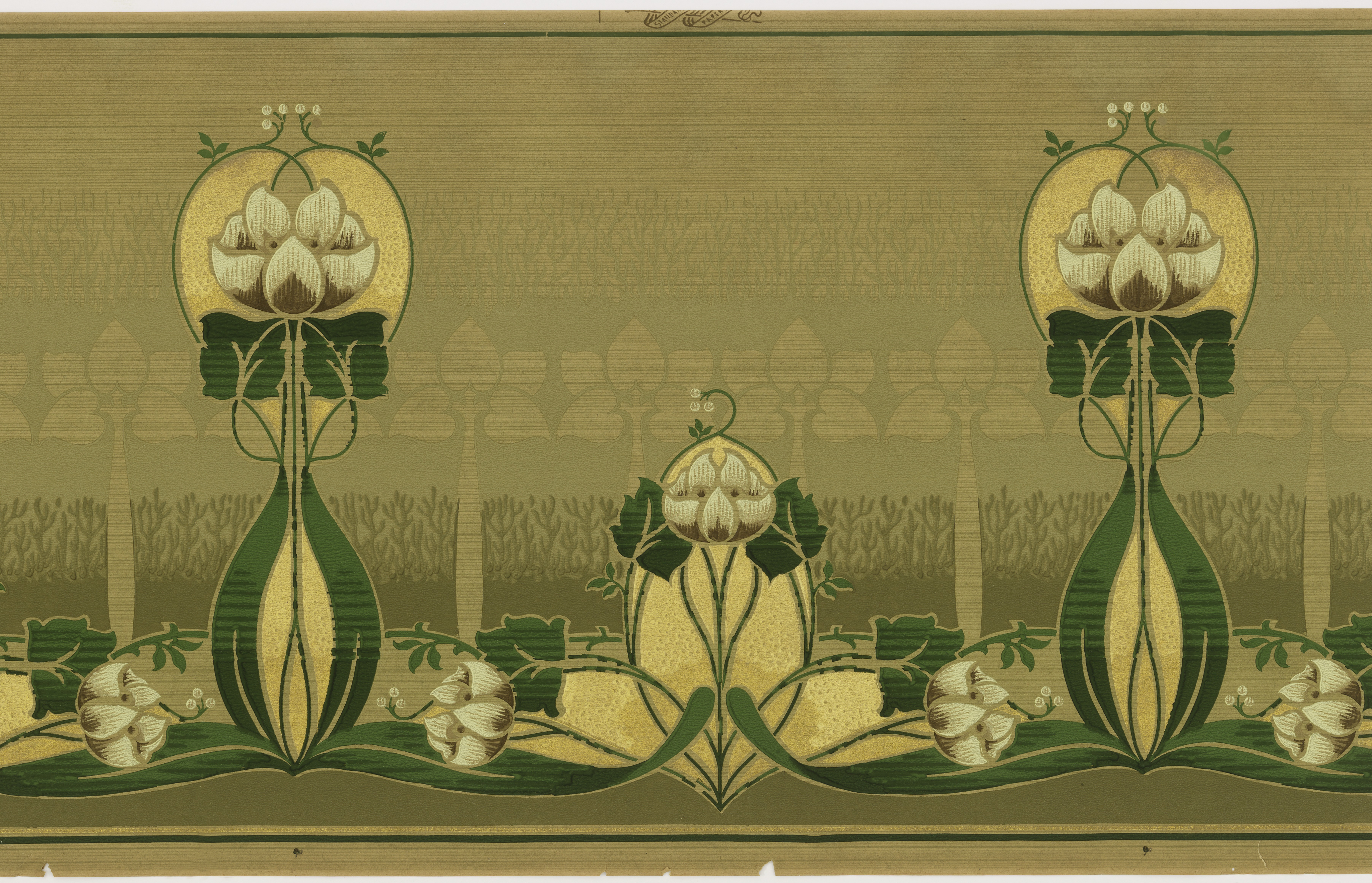 This is a frieze. It was manufactured by Standard Wall-Paper Company. It is dated 1905–1915 and we acquired it in 1979. Its medium is machine-printed paper. It is a part of the Wallcoverings department.