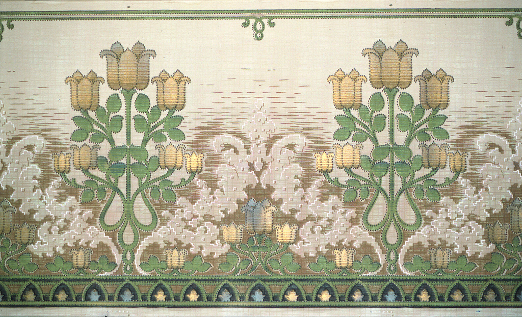 This is a frieze. It was manufactured by Becker, Smith & Page, Inc.. It is dated 1905–1915 and we acquired it in 1979. Its medium is machine-printed paper. It is a part of the Wallcoverings department.