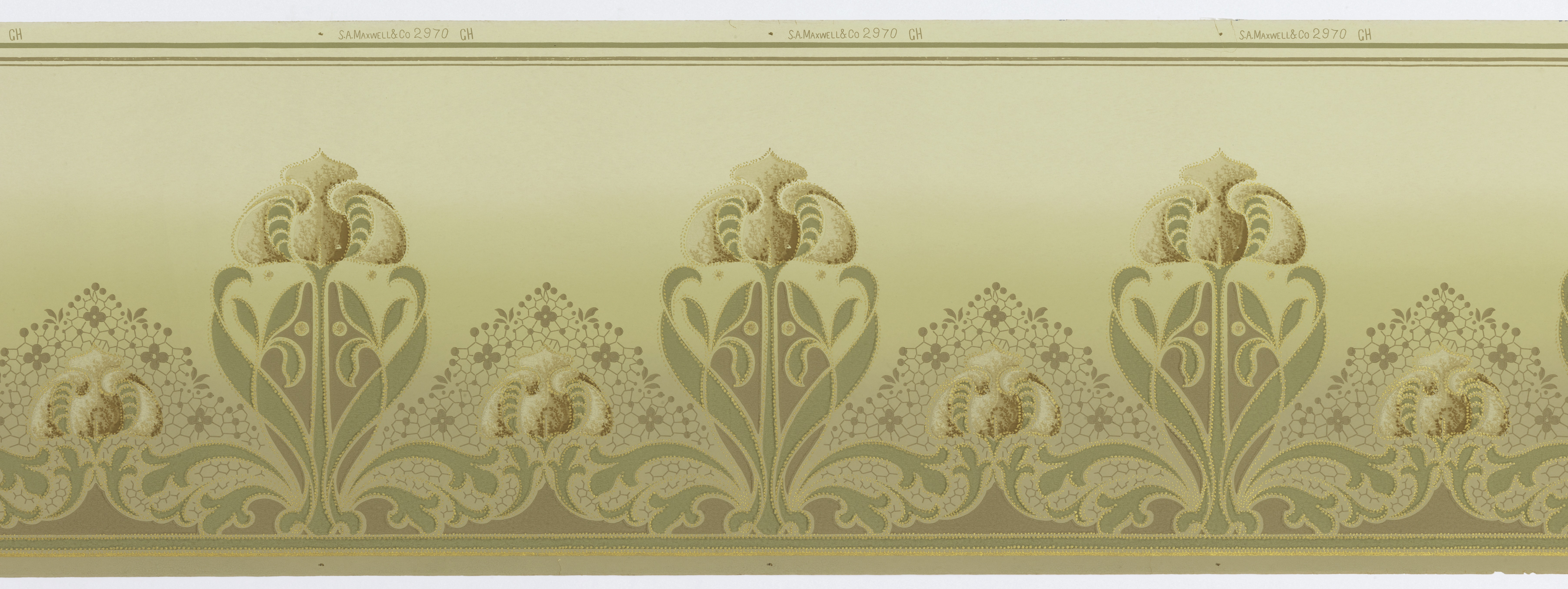 This is a frieze. It was distributed by Maxwell & Co., S.A.. It is dated 1905–1915 and we acquired it in 1979. Its medium is machine-printed paper. It is a part of the Wallcoverings department.