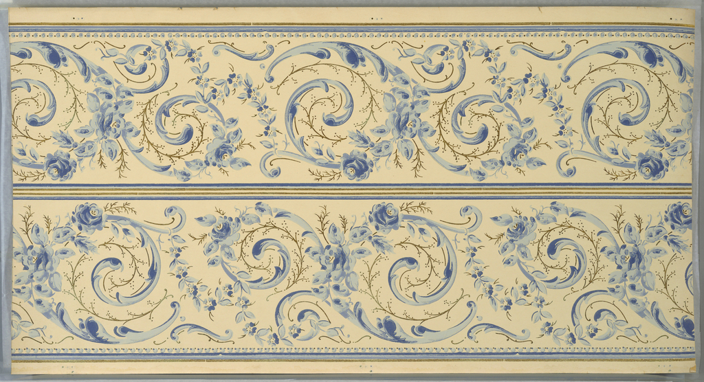 This is a frieze. It is dated 1905–1915 and we acquired it in 1979. Its medium is machine-printed paper.. It is a part of the Wallcoverings department.