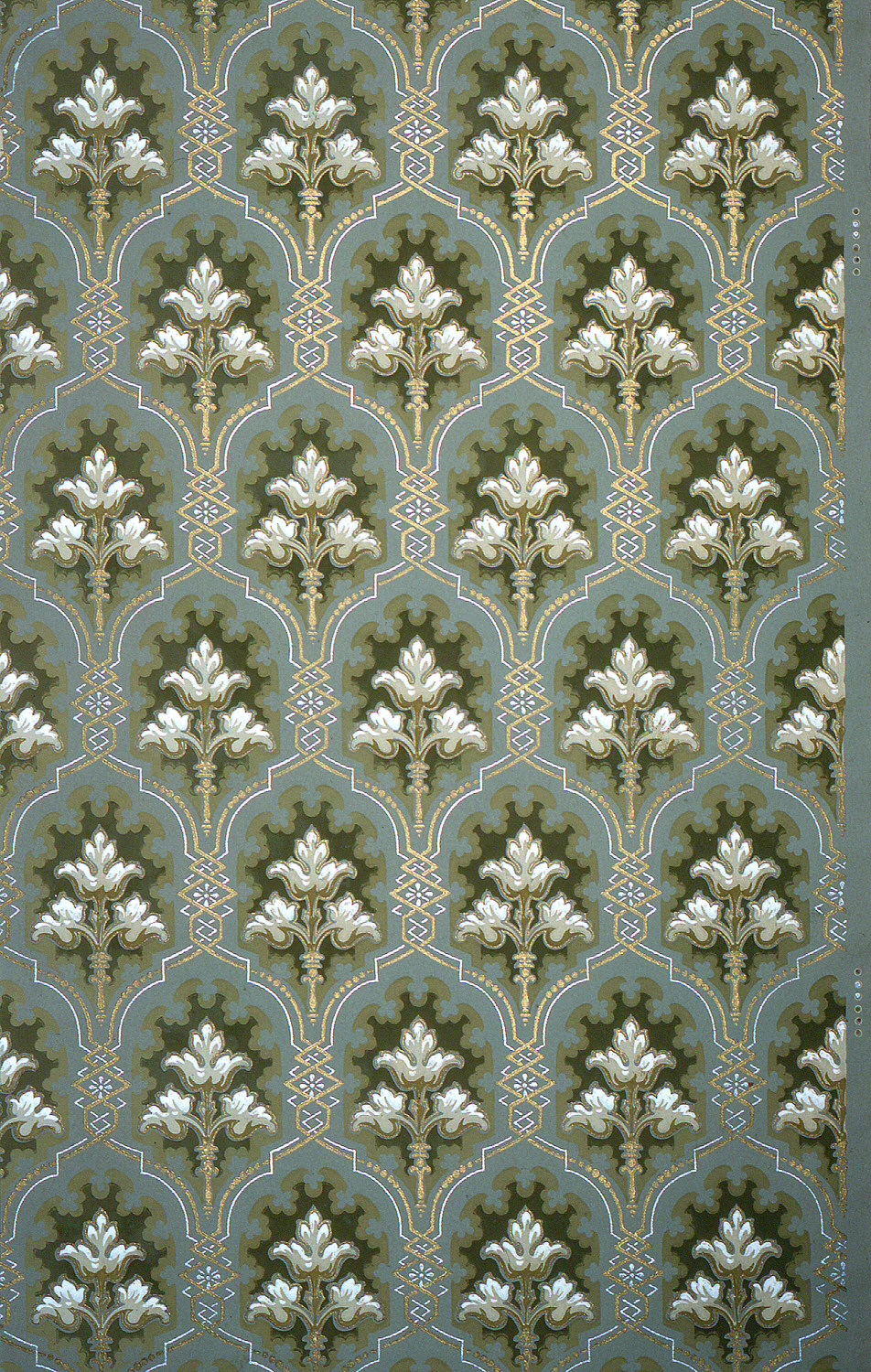 This is a Sidewall. It is dated 1905–1915 and we acquired it in 1979. Its medium is machine-printed paper, liquid mica. It is a part of the Wallcoverings department.