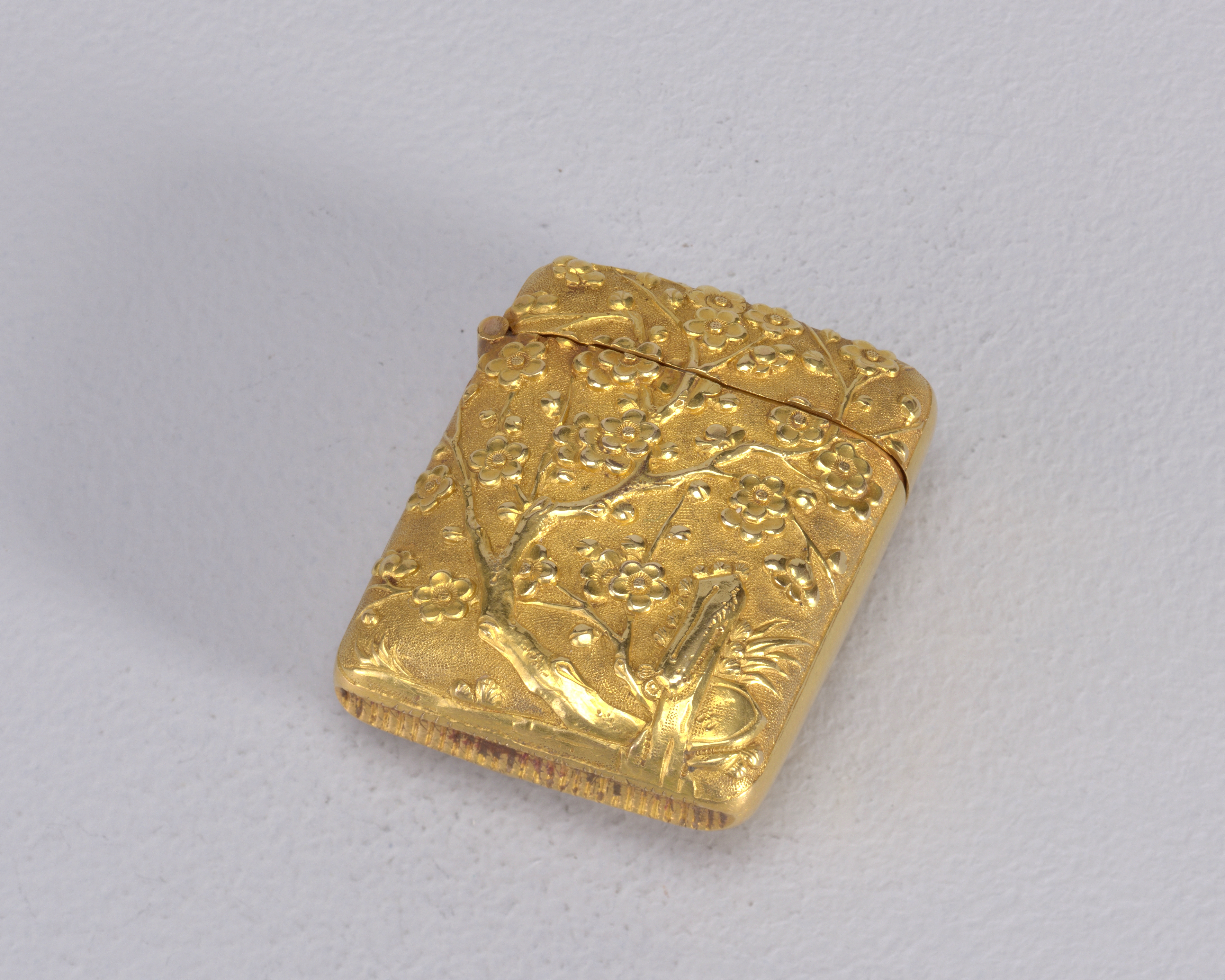 This is a Matchsafe. It is dated 1850 and we acquired it in 1980. Its medium is brass. It is a part of the Product Design and Decorative Arts department.