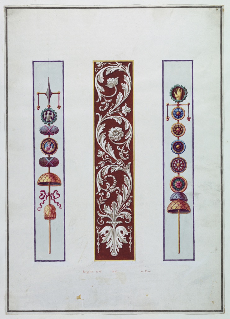 Drawing, Ornament Design, Arabesque Panel between Roman Standards
