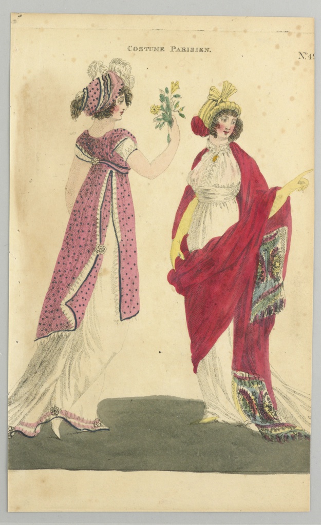 Printed in black ink, upper center: COSTUME PARISIEN; upper right edge: No. 49 [cut off on edge but appears to be a "9"]; Inscribed in pen and black ink, verso, upper left: Feb 1802