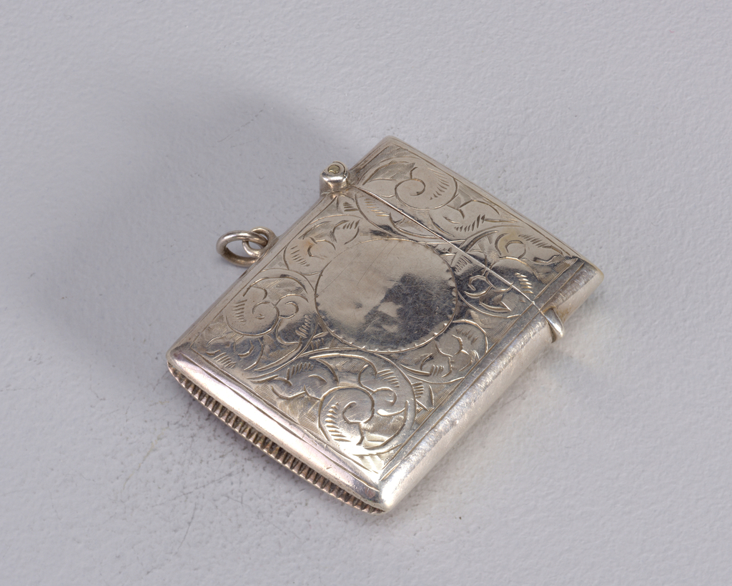 This is a Matchsafe. We acquired it in 1982. Its medium is silver. It is a part of the Product Design and Decorative Arts department.