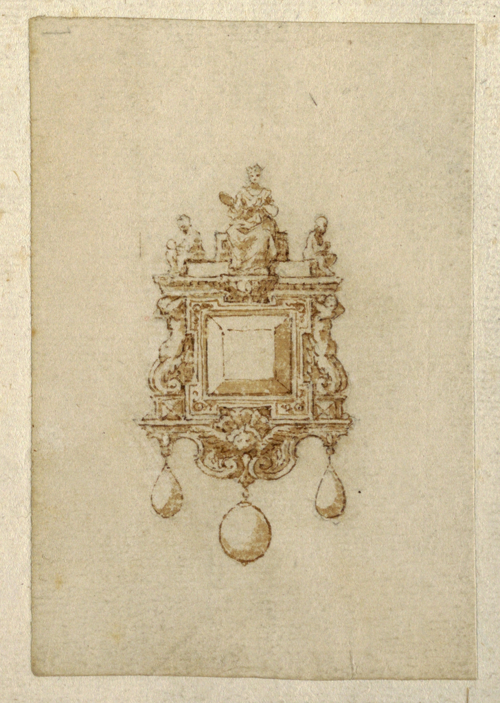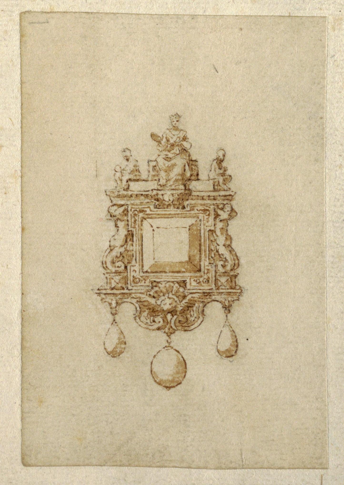Drawing, Design for brooch with seated woman; Italy; Museum purchase through gift of various donors and from Eleanor G. Hewitt Fund; 1938-88-5007