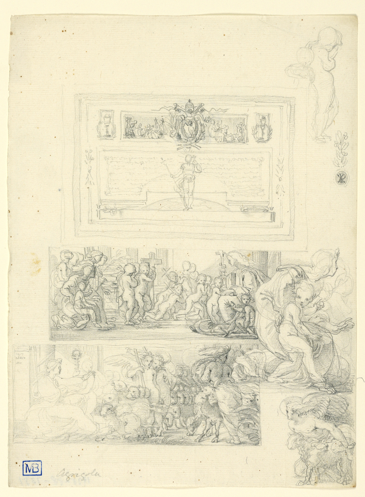 Drawing, Design for a Printed Certifiate of a Religious Ceremony for Children; Fortunato Duranti (Italian, 1787 - 1863); Italy; graphite on paper; 26.8 × 20 cm (10 9/16 × 7 7/8 in.); Museum purchase through gift of various donors and from Eleanor G. Hewitt Fund; 1938-88-7351