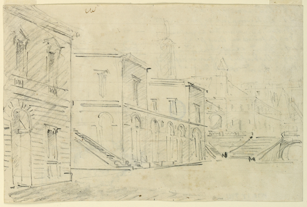 Drawing, Street in a town; Architect: Giuseppe Barberi (Italian, 1746–1809); Italy; graphite; Image: 17.9 x 27.2 cm (7 1/16 x 10 11/16 in.); Museum purchase through gift of various donors and from Eleanor G. Hewitt Fund; 1938-88-7461