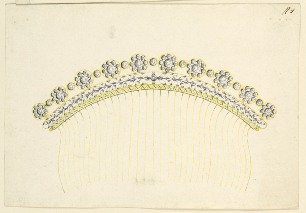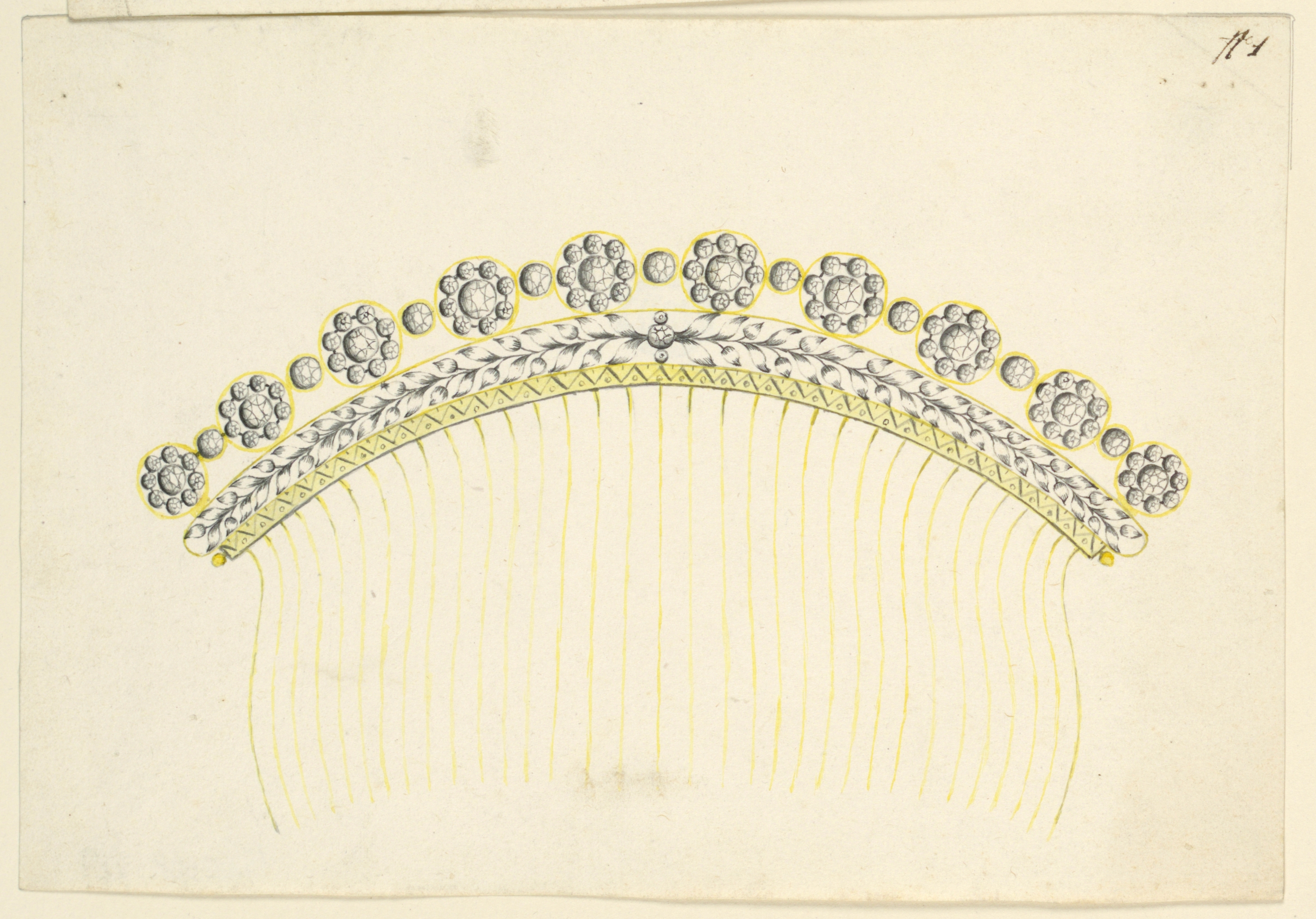 Drawing, Design for a Comb; Italy; pen and ink, brush and gray, yellow watercolor on paper; 16.1 × 23.4 cm (6 5/16 × 9 3/16 in.); Museum purchase through gift of various donors and from Eleanor G. Hewitt Fund; 1938-88-759
