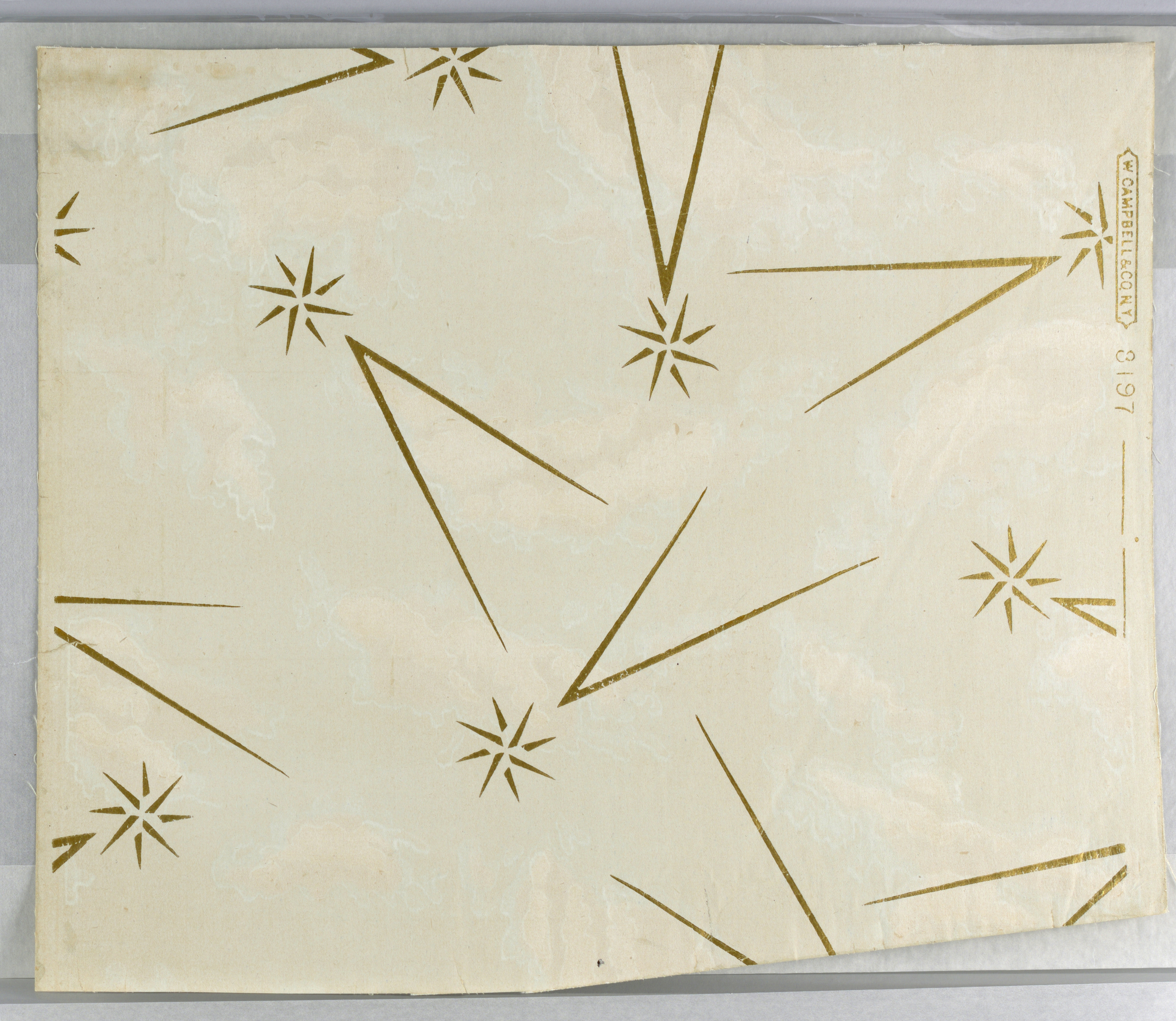 This is a Ceiling paper. It was manufactured by W. Campbell & Co.. It is dated 1890–1900 and we acquired it in 1939. Its medium is machine-printed paper. It is a part of the Wallcoverings department.