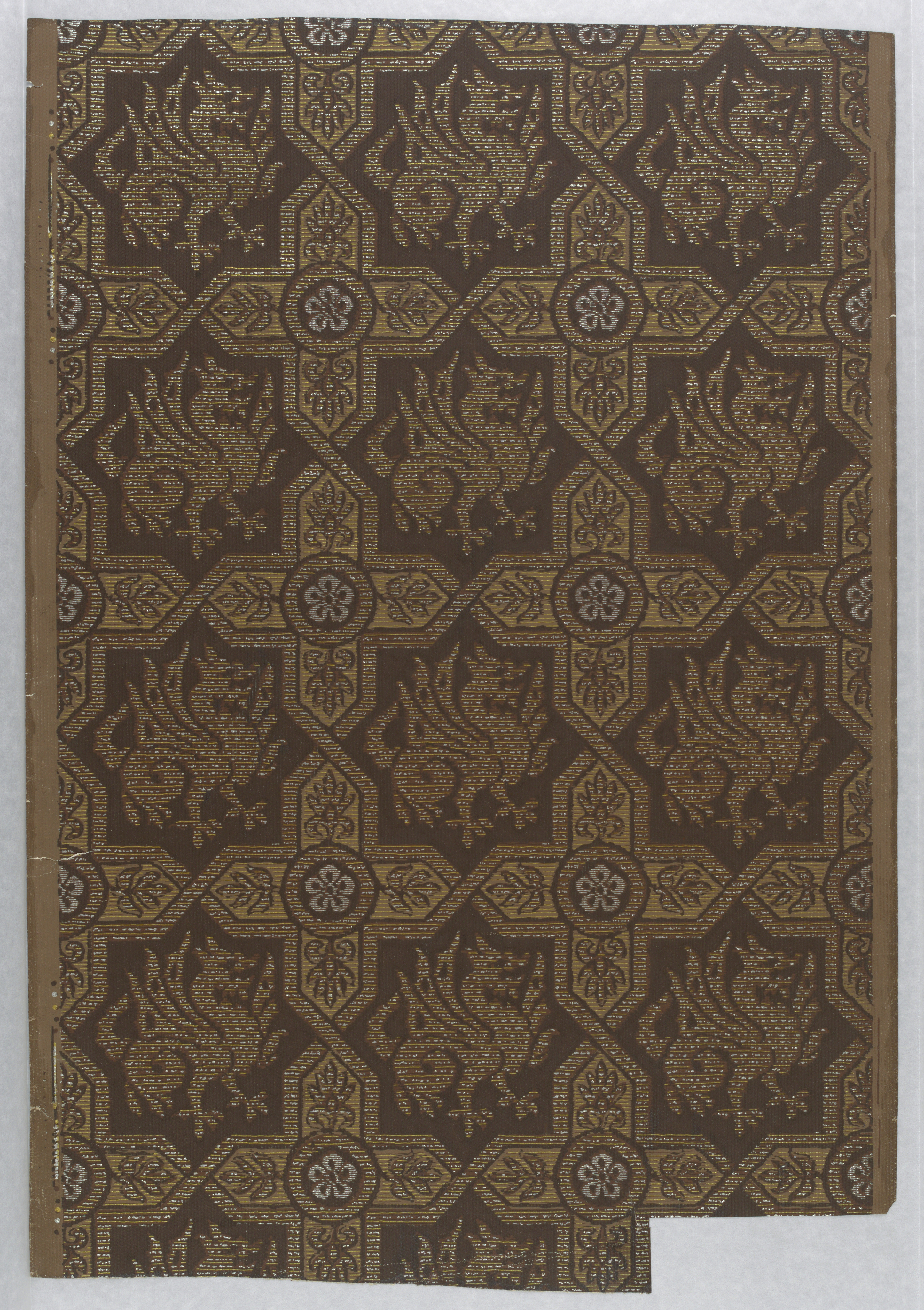 This is a Sidewall. It was manufactured by Paul Balin. It is dated 1872 and we acquired it in 1940. Its medium is block printed on embossed paper. It is a part of the Wallcoverings department.