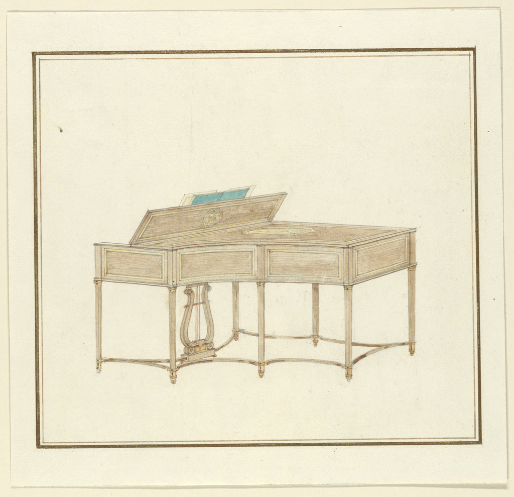 Drawing, Design for a Marquetry Piano Case; Designed by Durr Freedley (American, 1888–1938); USA; graphite and watercolor on card stock; 38.3 × 47.3 cm (15 1/16 × 18 5/8 in.); Gift of Edith Wetmore; 1939-79-7