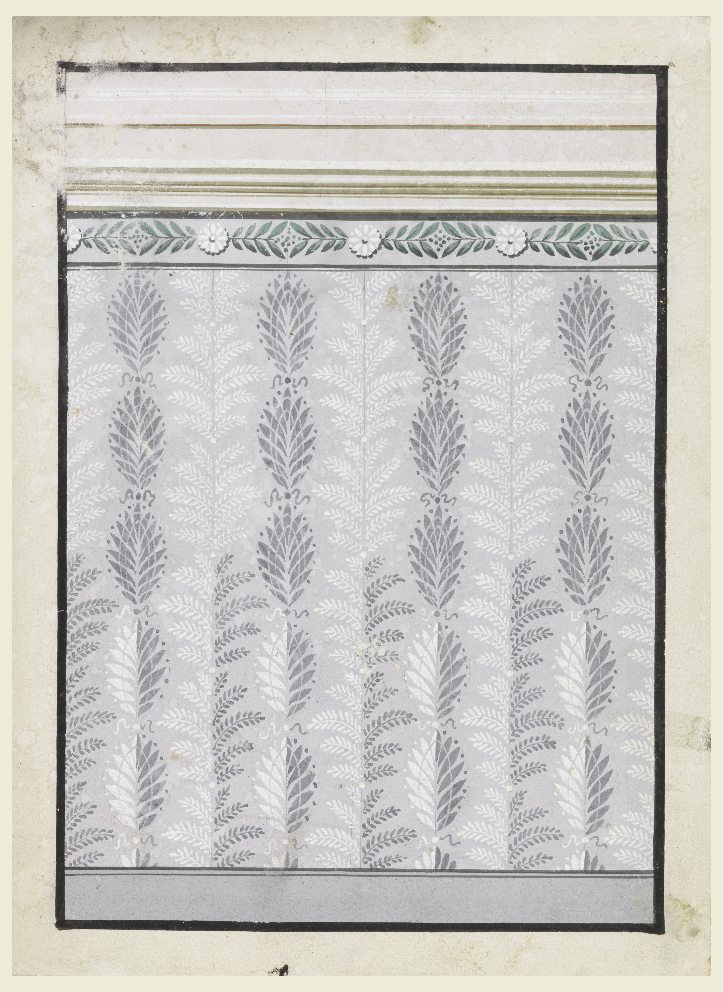 Drawing, Wallpaper Design; Austria; brush and gouache, graphite on white paper; 33.5 x 24.3 cm (13 3/16 x 9 9/16 in.); Museum purchase through gift of Mary Hearn Greims; 1940-120-38