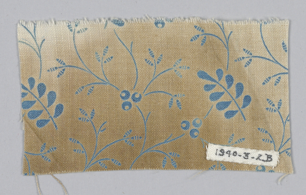 This is a Fragment. We acquired it in 1940. Its medium is printed. It is a part of the Textiles department.