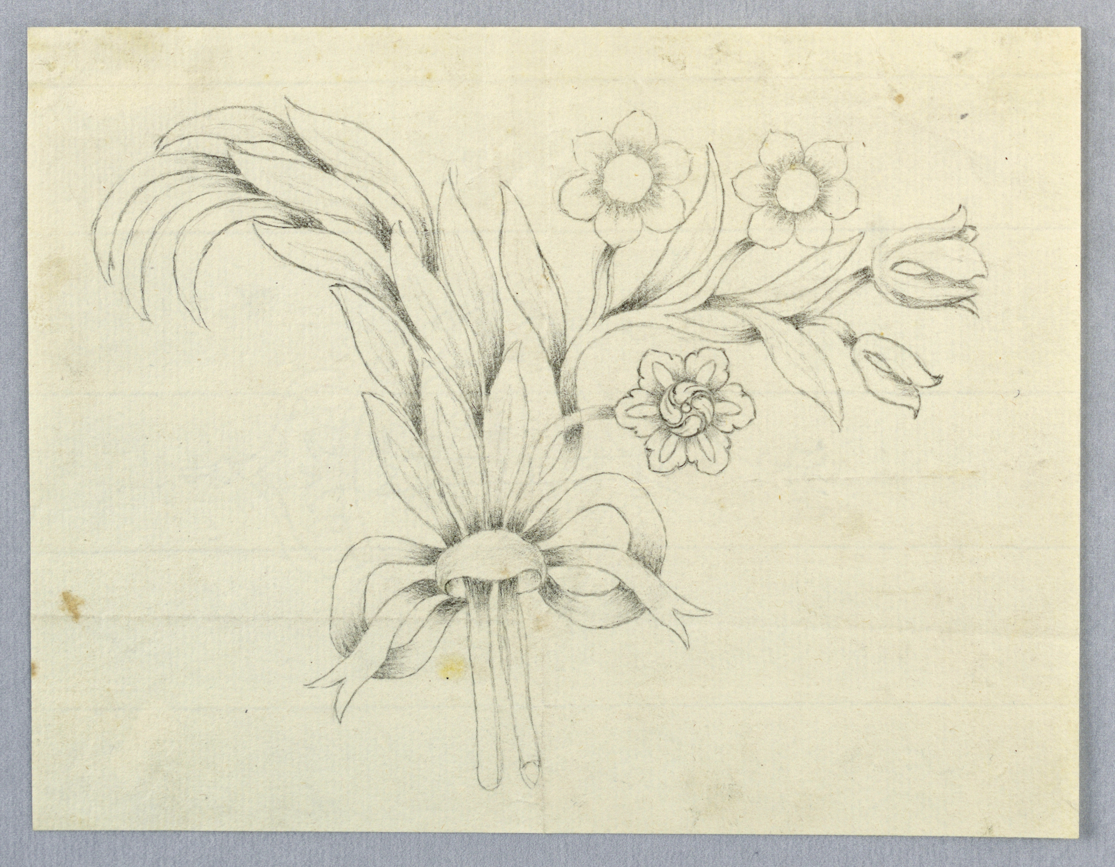 Drawing, Design for a Brooch with Flowers; Italy; graphite on paper; 14 × 18.1 cm (5 1/2 × 7 1/8 in.); 1940-86-598
