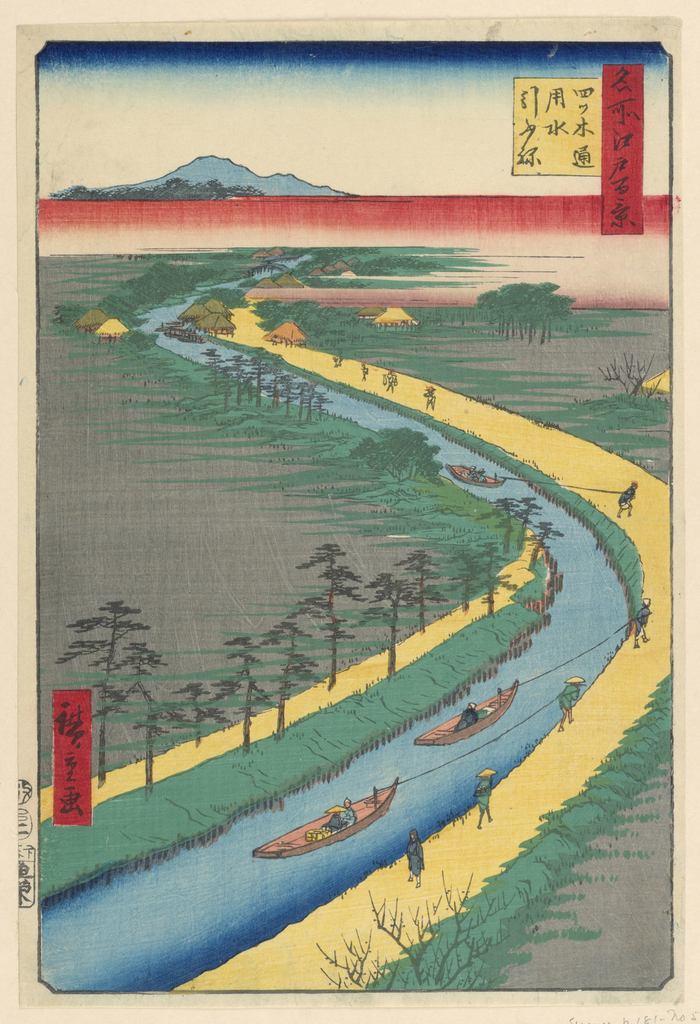Print, Hauling Canal Boats, Yotsugi Road (Yotsugi-dori, yosui hikifune) From the Series One Hundred Famous views of Edo