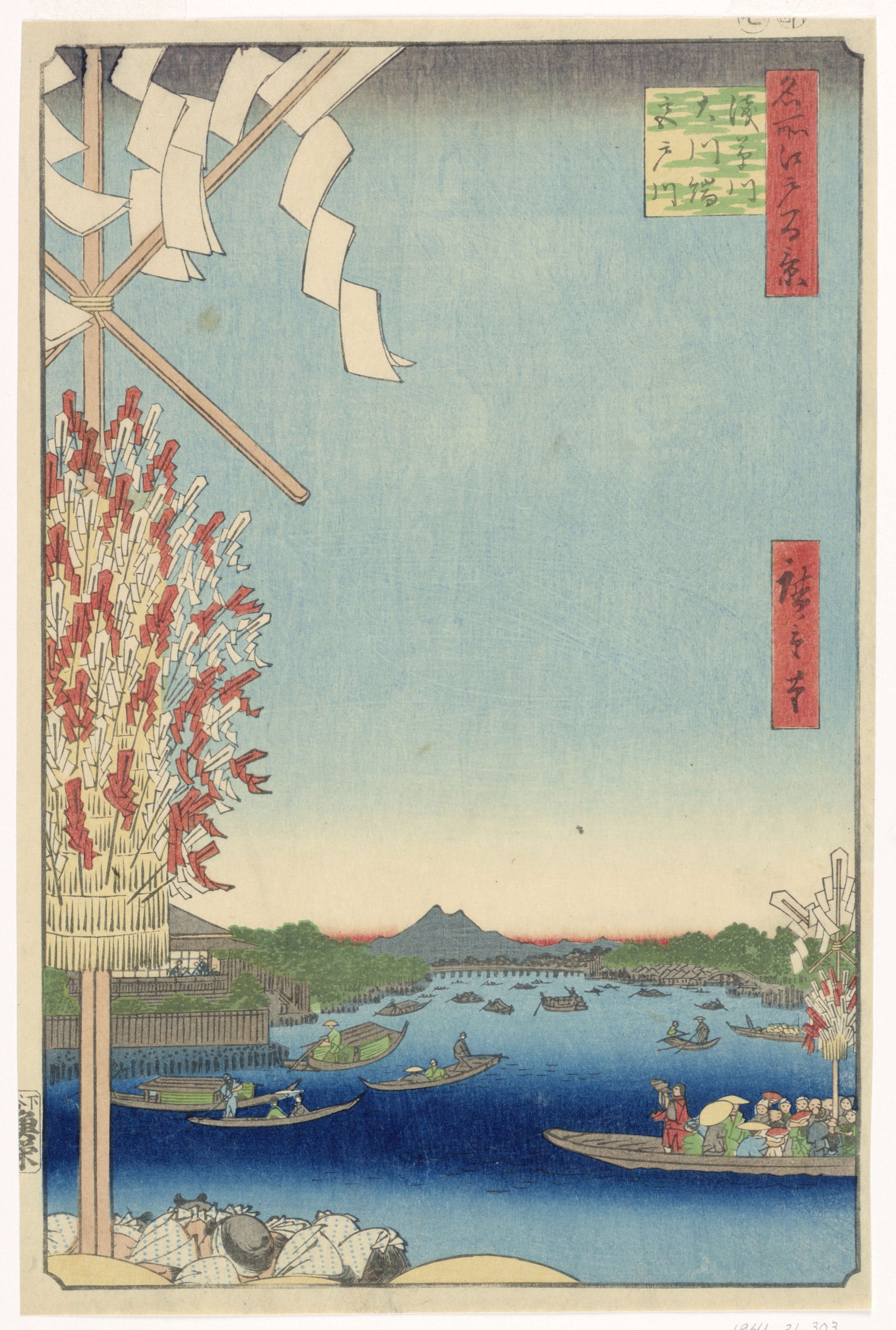 Print, Miyato River by Great Bank of Asakusa River, No 68 from One Hundred Views of Edo (Asakusa-gawa Okawa-bata, Miyato-gawa); Ando Hiroshige (Japanese, 1797 - 1858); Japan; woodblock print in colored ink on paper ; Gift of the Estate of Mrs. Robert H. Patterson; 1941-31-303