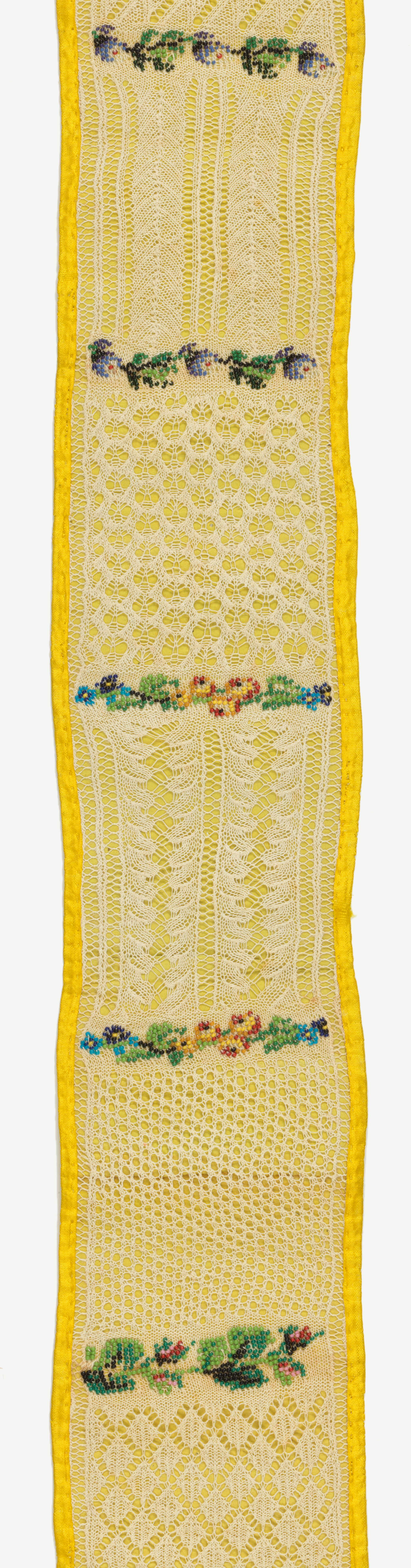 Sampler (Germany); Made by Maria Flodor; cotton, glass beads, paper backing; 216 x 9.5 cm (85 1/16 x 3 3/4 in.); Bequest of Mrs. Henry E. Coe; 1941-69-159