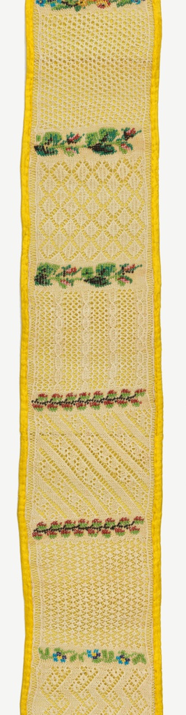 Sampler (Germany); Made by Maria Flodor; cotton, glass beads, paper backing; 216 x 9.5 cm (85 1/16 x 3 3/4 in.); Bequest of Mrs. Henry E. Coe; 1941-69-159