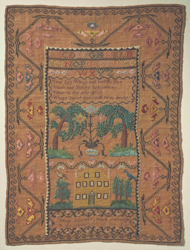 A needlework instructress has not yet been associated with this group of samplers. It is thought that their makers may have attended an area boarding school. It is also not possible to identify Betsy Adams with any certainty. Her work is undated and there were several girls by that name born during the last two decades of the eighteenth century in Middlesex County.