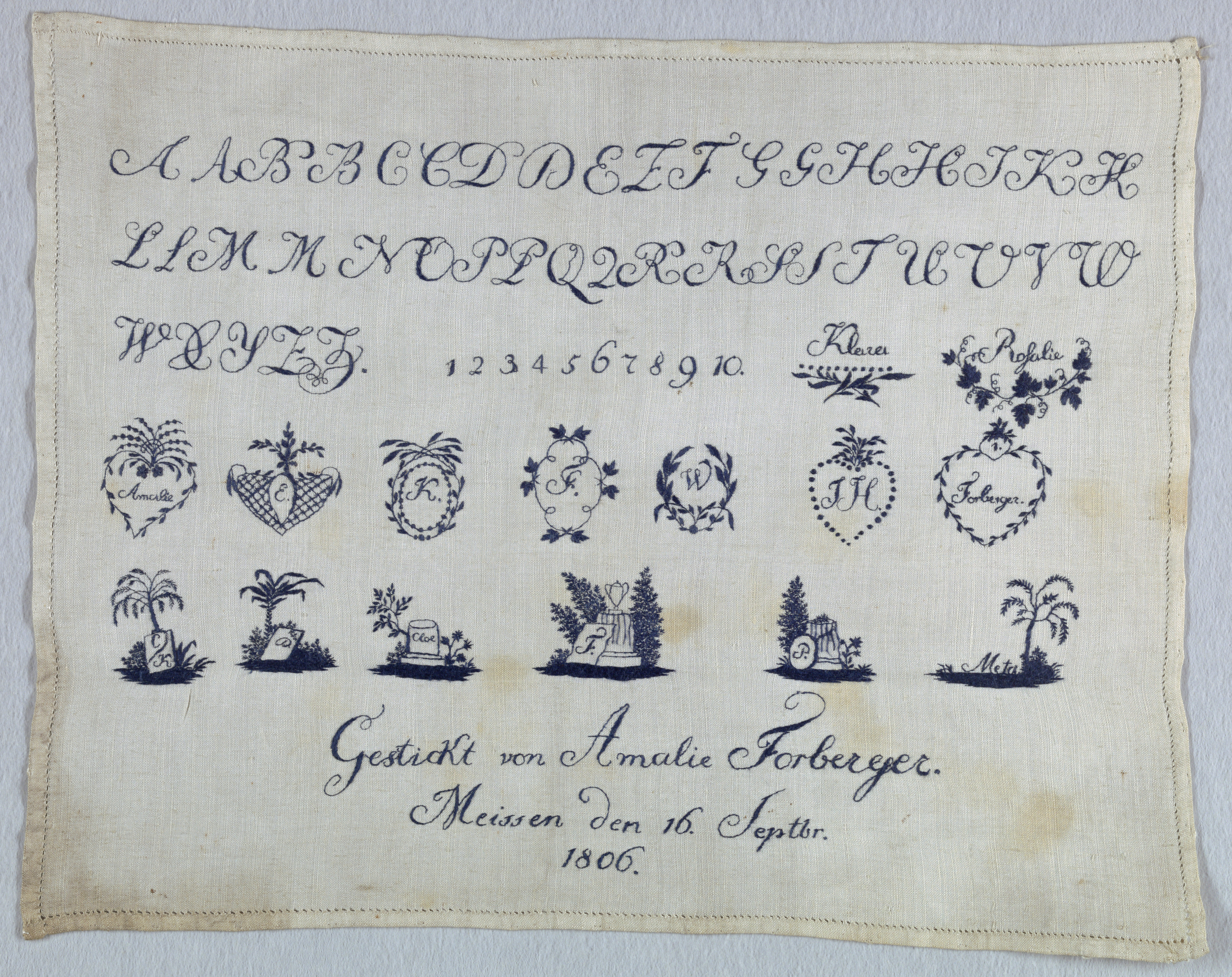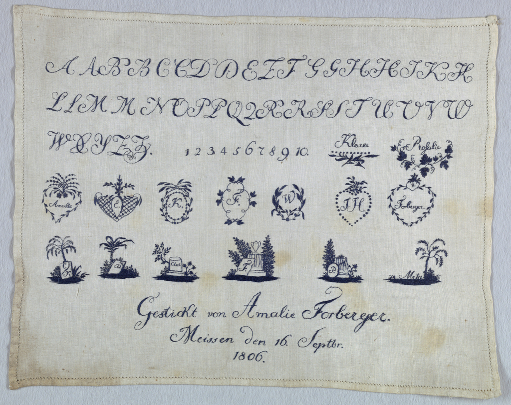 <ref name=CH>{{cite web |url=https://www-4.collection.cooperhewitt.org/objects/18564421/ |title=Sampler (Germany) |author=Cooper Hewitt, Smithsonian Design Museum |accessdate=20 December 2025 |publisher=Smithsonian Institution}}</ref>