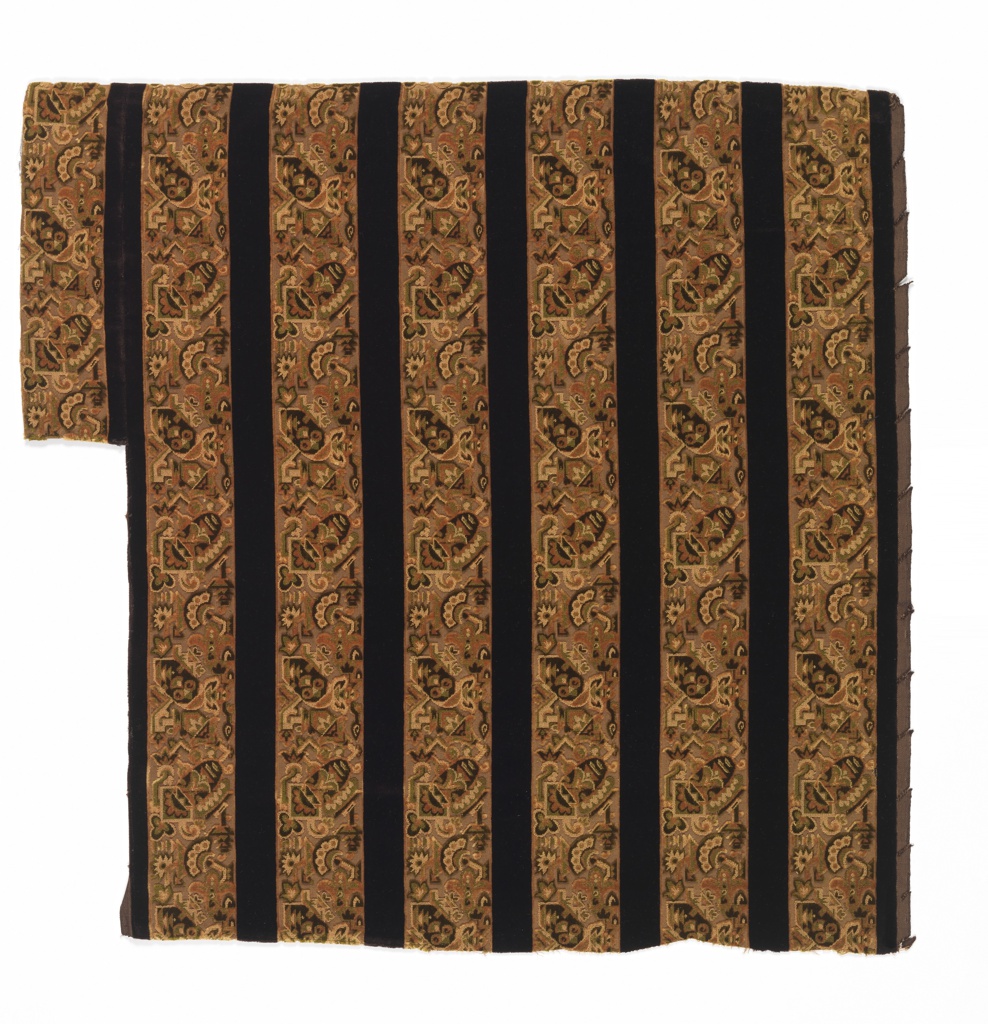 This is a Fragment. It is dated early 20th century and we acquired it in 1941. Its medium is silk and its technique is cut and uncut voided supplementary warp pile in a satin foundation (velvet). It is a part of the Textiles department.