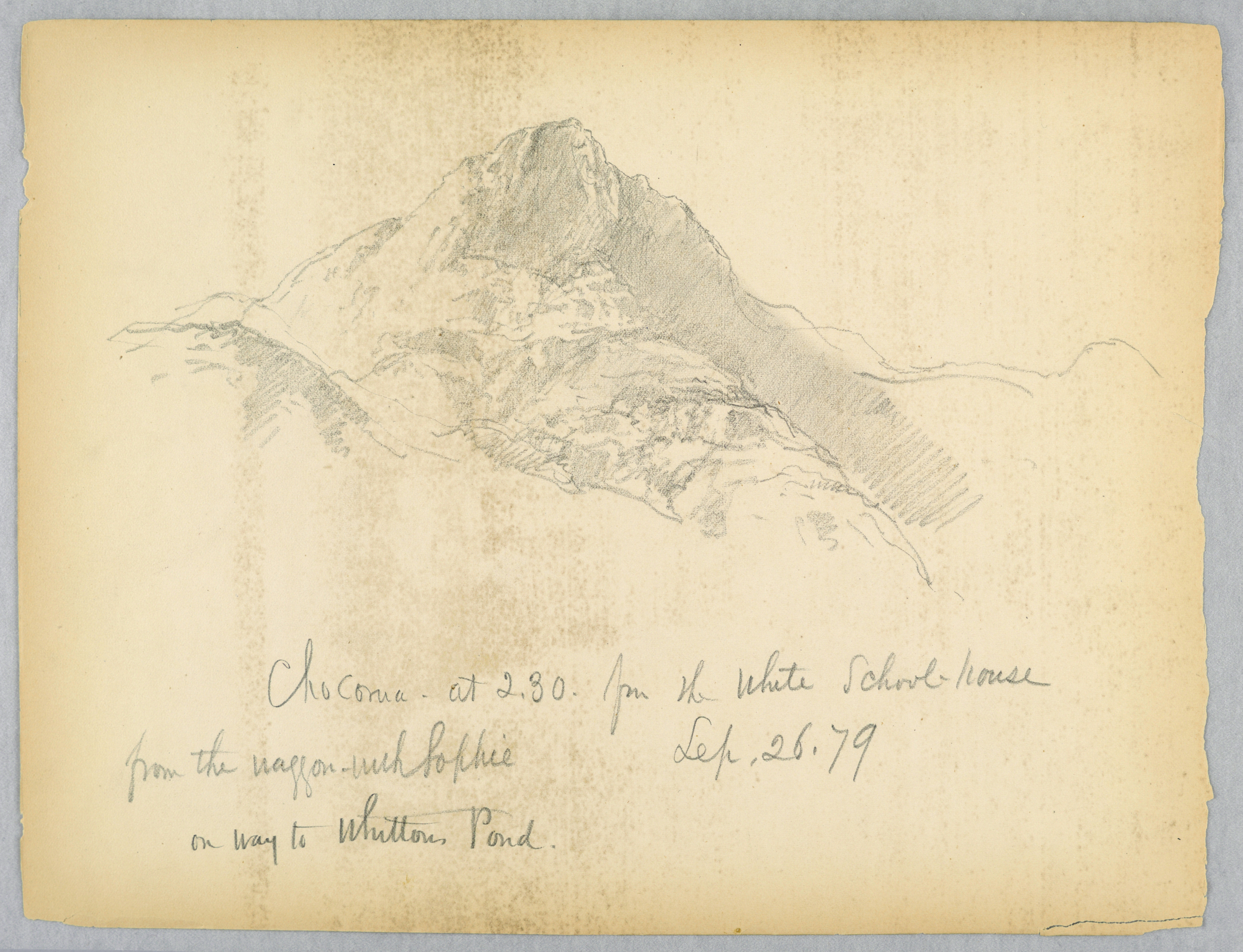 Inscribed in graphite, lower margin: Chocorua - at 2.30. pm from the White School-house; lower left: from the waggon-with Sophie / on way to Whittons Pond; lower right: Sep. 26. 79 Verso: Inscribed in graphite: Chocorua shoulders 4.pm / (on first spur towards the lake) / Sep 23. 79