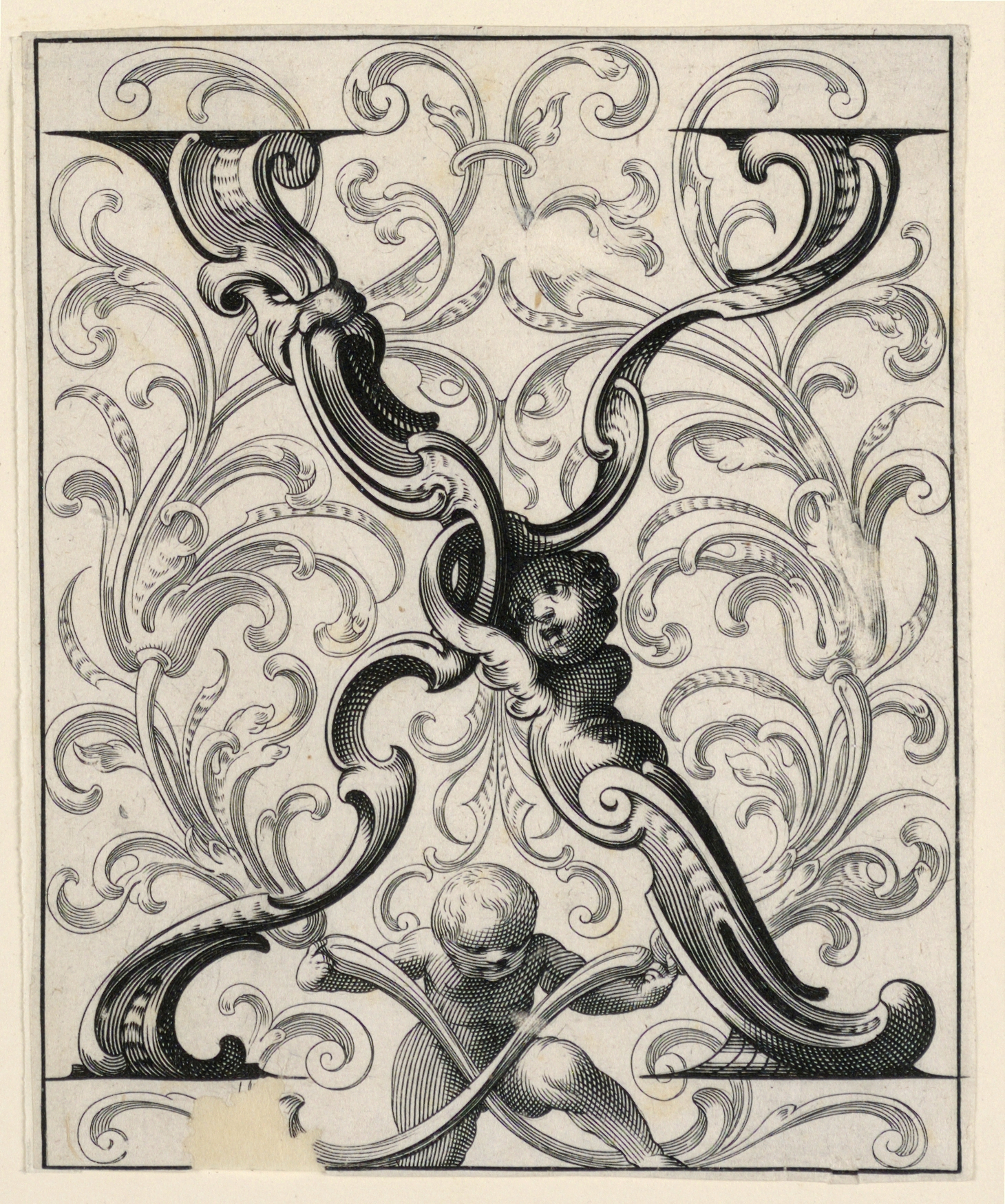 Print, Panel with the Letter "X" from the "Newes ABC Büechlein"; Print Maker: Lukas Kilian (German, 1579 – 1637); Germany; engraving on off-white laid paper; 14.2 × 11.7 cm (5 9/16 × 4 5/8 in.); Museum purchase through gift of Adam G. Norrie in memory of E.L. Breese; 1943-38-15