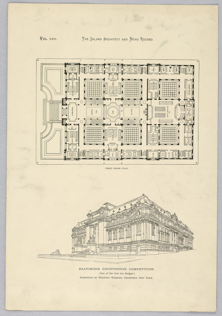 Reproduction, Baltimore Courthouse Competition; Architect: Whitney Warren Jr. (American, 1864–1943); USA; Gift of Mrs. William Greenough; 1943-51-381-1,2