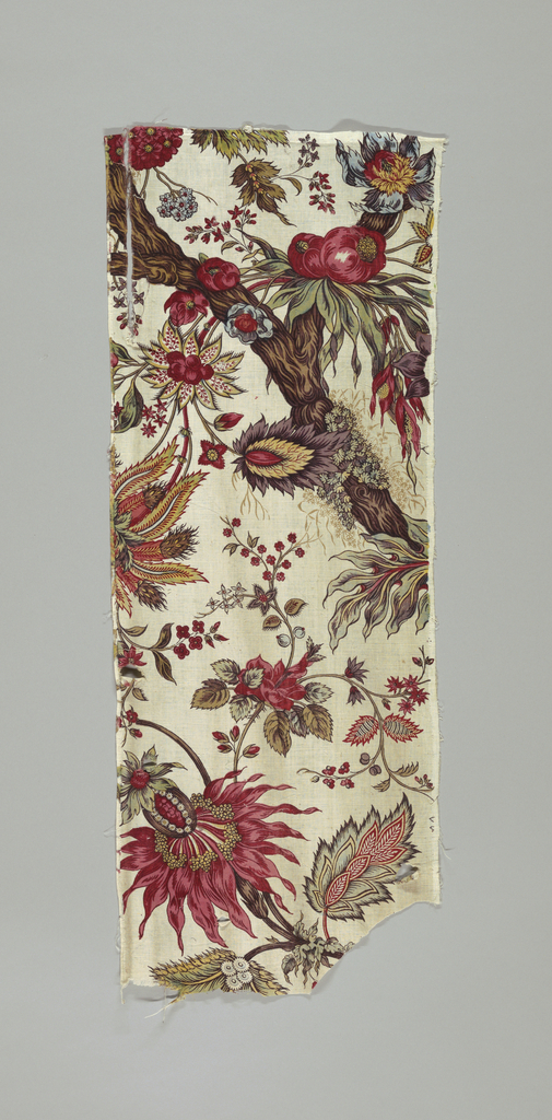 This is a Textile. It was manufactured by Soehnee L'Aine et Cie. It is dated ca. 1799 and we acquired it in 1943. Its medium is cotton and its technique is block printed on plain weave. It is a part of the Textiles department.