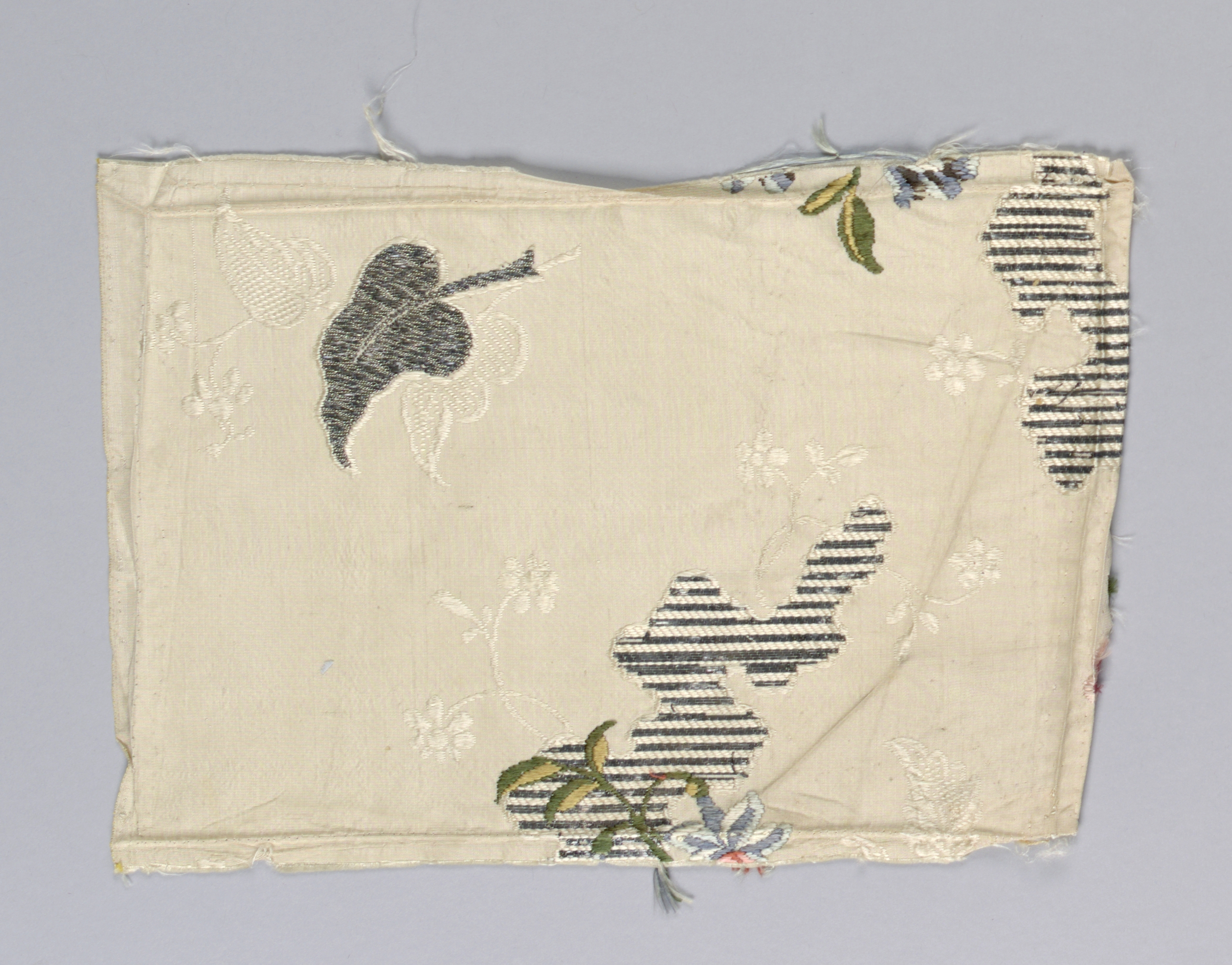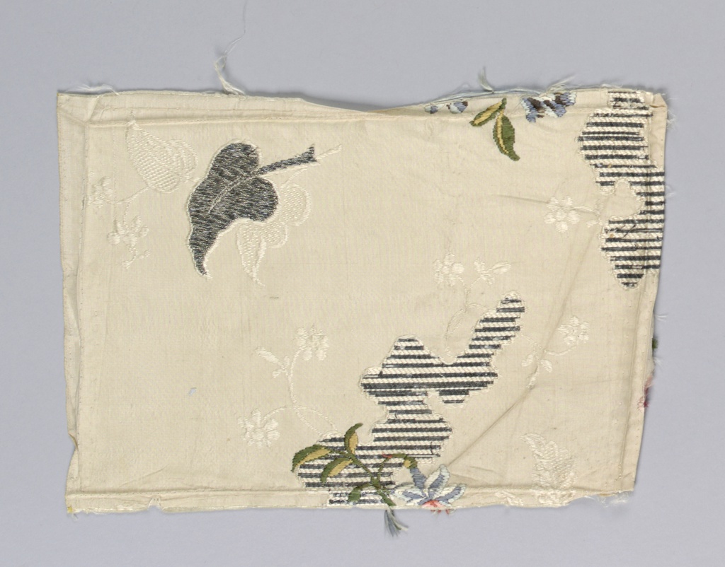 Fragment (England); Designed by Anna Maria Garthwaite (English, 1688–1763); silk, metallic thread; H x W (a): 53 × 38.7 cm (20 7/8 × 15 1/4 in.) H x W (b): 56.5 × 38.7 cm (22 1/4 × 15 1/4 in.) H x W (c): 80 × 24.1 cm (31 1/2 × 9 1/2 in.) H x W (d): 26.7 × 45.7 cm (10 1/2 in. × 18 in.) H x W (e): 81 × 24.4 cm (31 7/8 × 9 5/8 in.) H x W (f): 17.1 × 24.4 cm (6 3/4 × 9 5/8 in.); Gift of Ms. James Forrestal; 1945-28-1-a/f