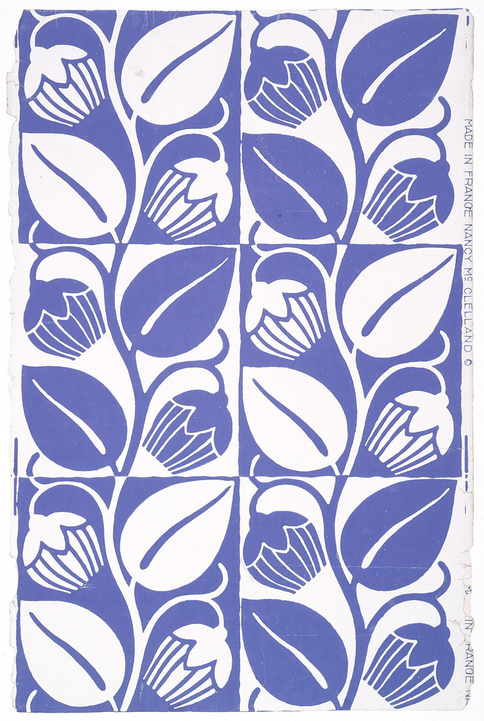This is a Sidewall. It was distributed by Nancy McClelland, Inc.. It is dated 1920 and we acquired it in 1945. Its medium is block-printed paper. It is a part of the Wallcoverings department.