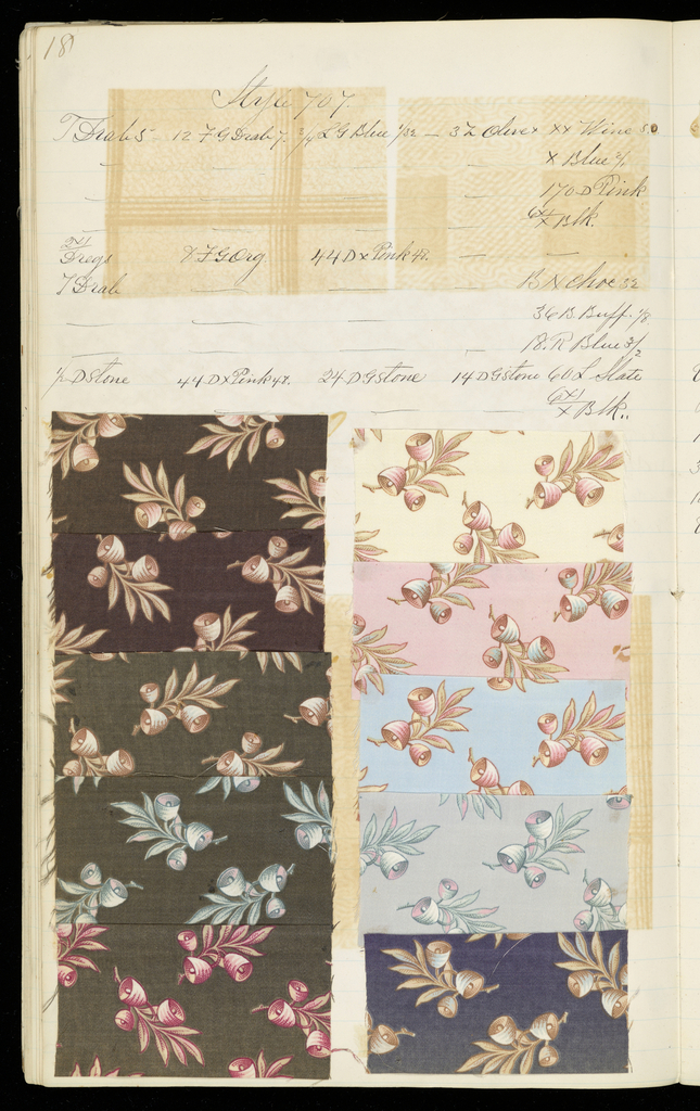 This is a Printer's sample book. It was manufactured by Cocheco Print Works. It is dated 1884 and we acquired it in 1945. Its medium is cotton samples adhered to paper, bound in cardboard and its technique is samples printed on plain weave. It is a part of the Textiles department.