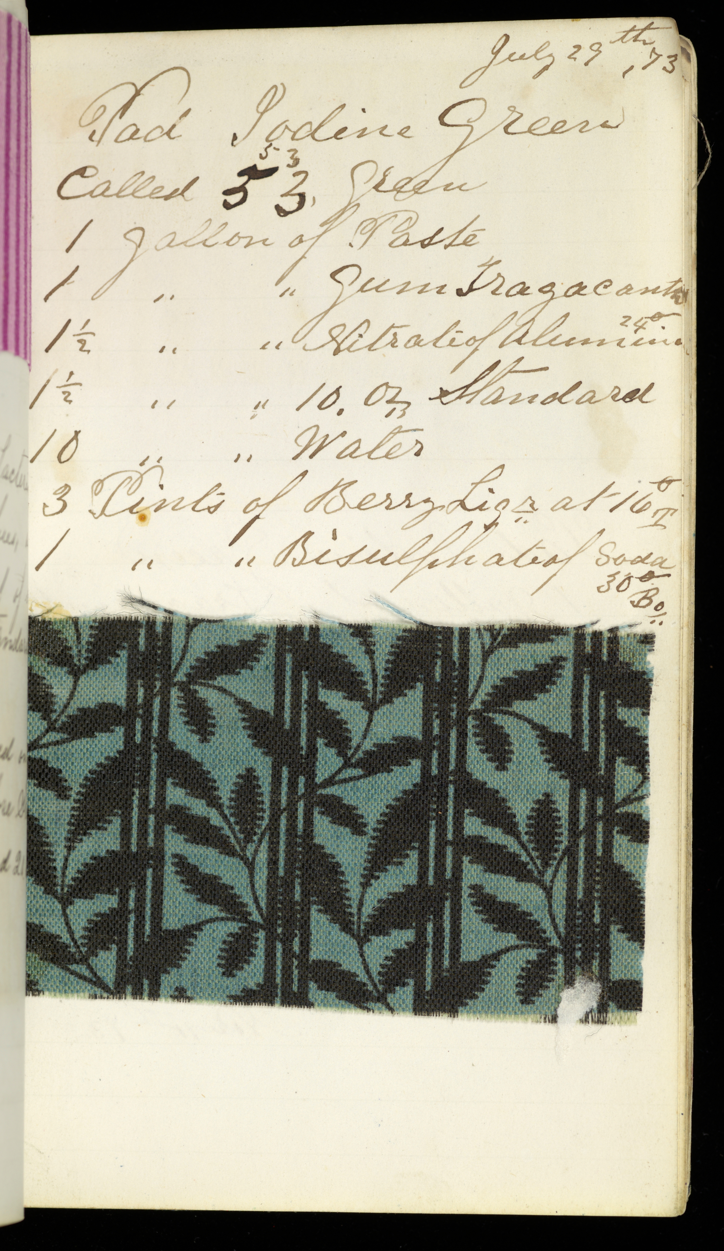 This is a Printer's sample book. It was manufactured by Old Pacific Print Works. It is dated 1866–75 and we acquired it in 1945. Its medium is paper and cotton. It is a part of the Textiles department.