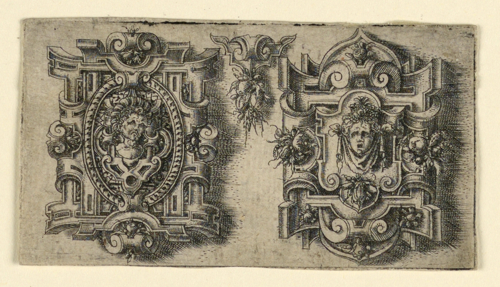 Print, Two brooches; Matthias Zündt (ca. 1498–1572); Print Maker: Matthias Zündt (German, 1498 - 1572); Germany; engraving on paper; 4.9 × 9 cm (1 15/16 × 3 9/16 in.); Museum purchase through gift of Mrs. John I. Kane; 1945-6-5