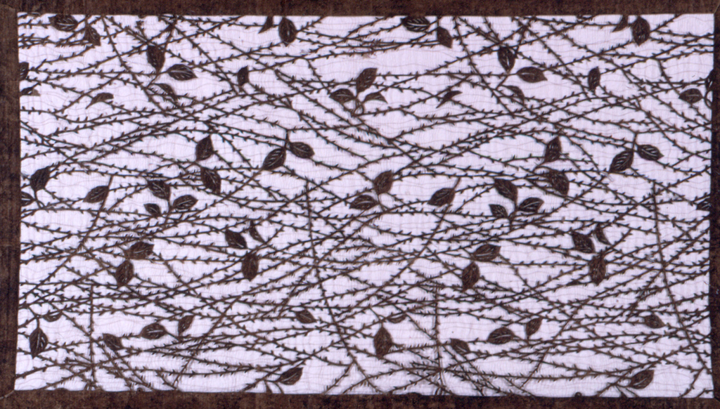 Stencil, Willow and Leaves; Japan; mulberry paper (kozo washi) treated with fermented persimmon tannin (kakishibu), and silk threads (itoire); Museum purchase through gift of Norvin Hewitt Green; 1946-104-1