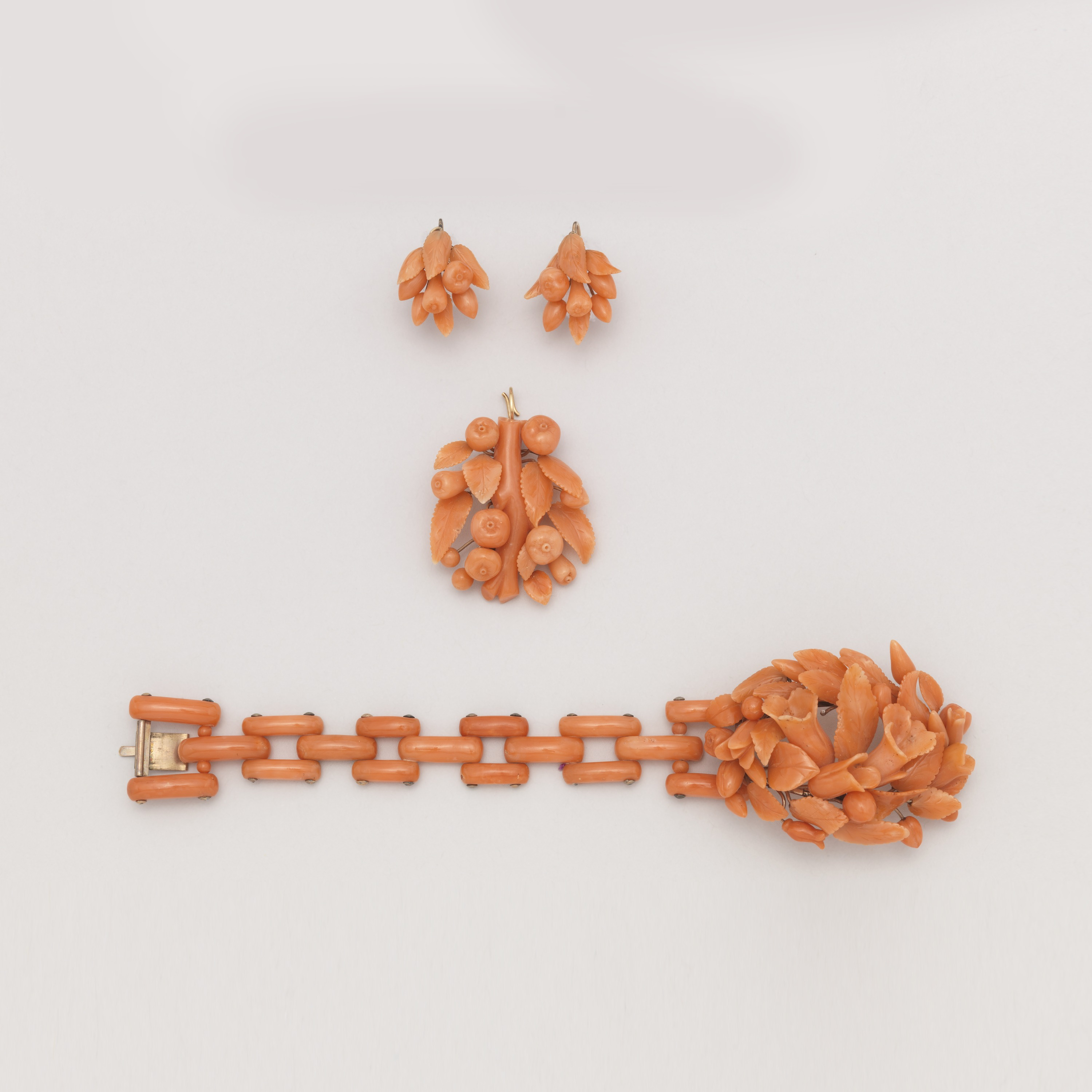 This is a bracelet. It is dated ca. 1870 and we acquired it in 1946. Its medium is coral, gold. It is a part of the Product Design and Decorative Arts department.